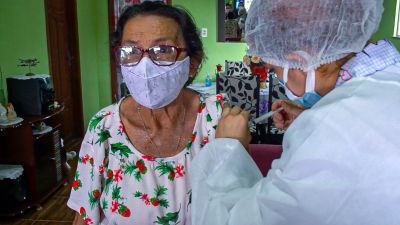 Idosa de 98 anos foi a primeira vacinada. A vacinação será feita em domicílio, com agendamento pelo Disque Corona Vírus, no número (91) 9.8197-6999