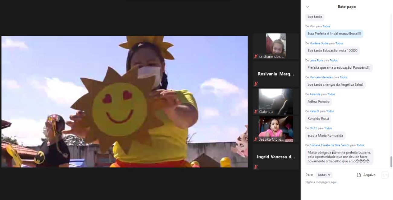 A live de encerramento contou com 247 participantes, sendo aproximadamente 500 inscritos, divididos por pontos nas escolas, entre alunos, pais e professores. A Prefeita Municipal, Luziane Solon, estava presente e participou do início ao fim. A executiva fez a abertura da live e demonstrou gratidão a todos os professores, à SEMED e, especialmente, às crianças, devolvendo a esperança que logo estarão presencialmente nas escolas.