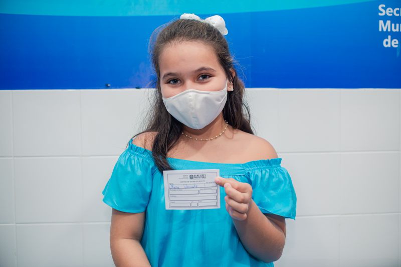Alana Daniele, de 9 anos, foi a primeira criança a ser imunizadas contra o coronavírus, em Benevides, na Região Metropolitana de Belém. Ela estava acompanhada da mãe e comemorou o momento. “Estou muito feliz. Estava ansiosa. Eu queria me vacinar, sempre falava para a mamãe. Hoje foi um dia muito especial”, comentou a estudante.