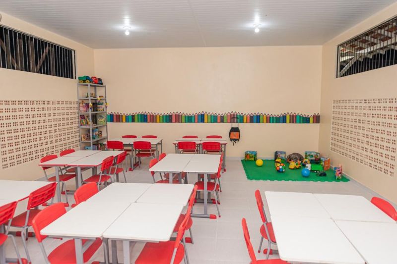 Com a reforma e ampliação, a escola tem hoje duas salas de aula, cantinho de leitura, copa reformada, refeitório, depósito de material de limpeza, almoxarifado, dois banheiros e mais um banheiro com acessibilidade, parte elétrica e hidráulica nova, secretaria climatizada, ventiladores novos, equipamentos e novos mobiliários, área ajardinada para recreação, além da intervenção da URBAN95 que deixou o espaço mais amigável para as crianças.