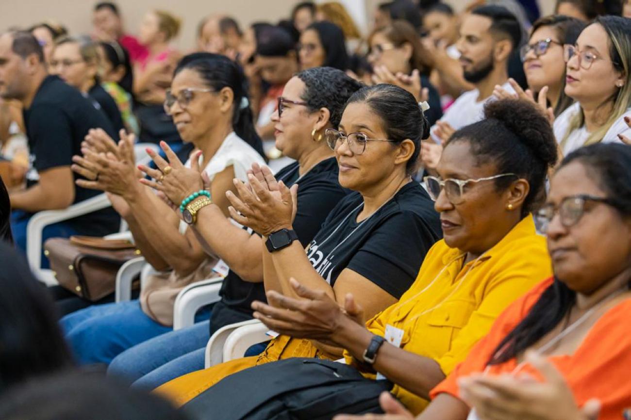 No penúltimo dia, o encontro foi com os professores do 5º e 9º ano, com o tema “Qualidade da educação de Benevides: perspectivas e desafios”, ministrado pelos professores Kalilo Brasil e Rita de Cássia, que falaram sobre o cenário de desafios no ambiente escolar e de que modo esses desafios podem ser mitigados, impactando no bom desempenho escolar.