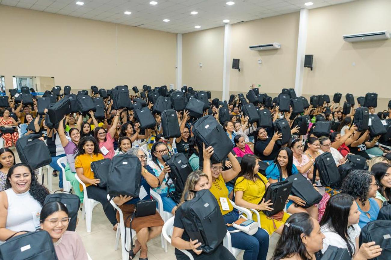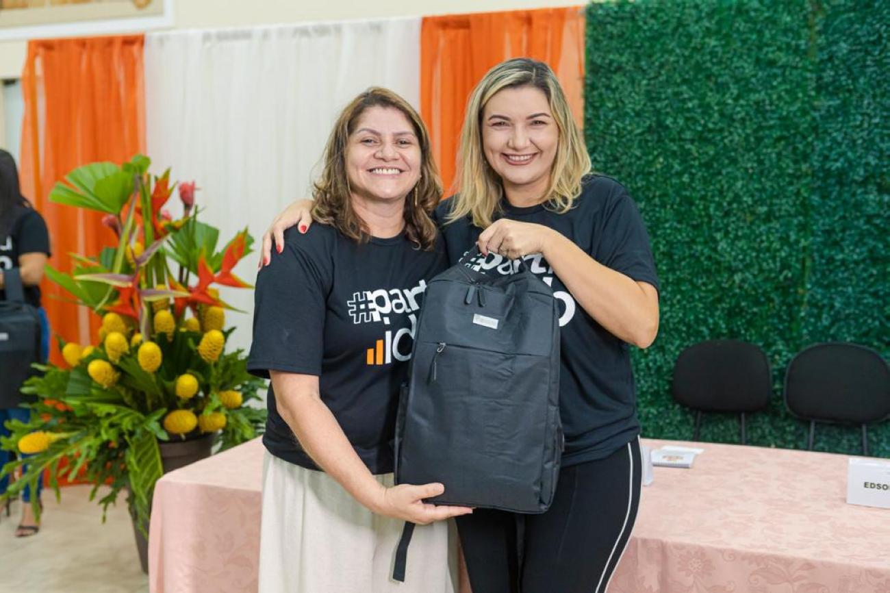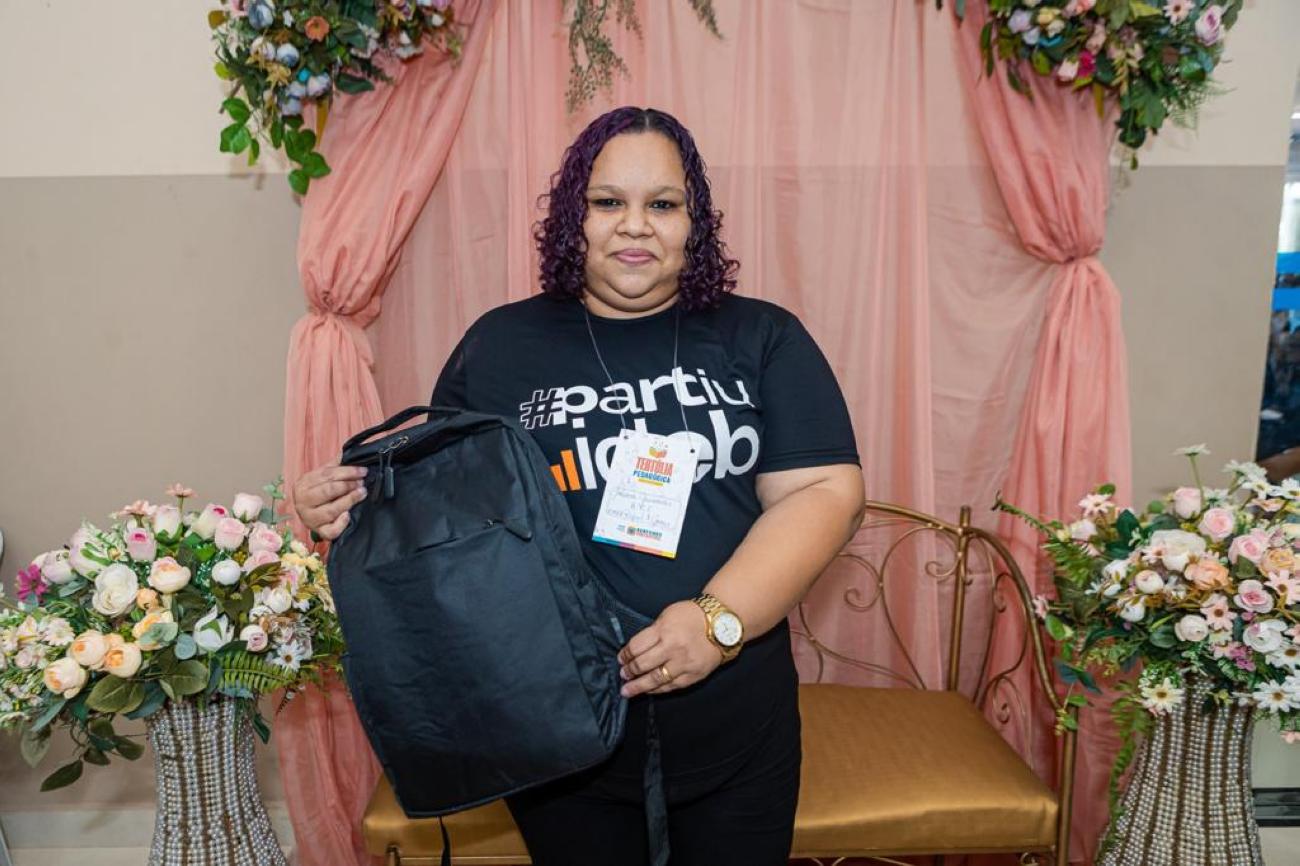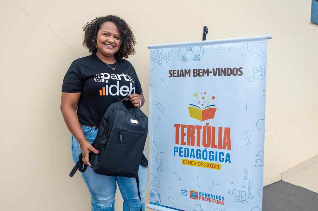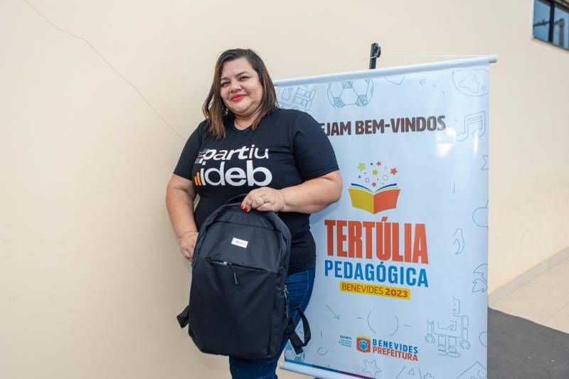 No encerramento da Tertúlia Pedagógica, a Prefeita de Benevides, Luziane Solon, entregou mais um presente exclusivo de valorização aos professores, uma mochila com materiais personalizados para uso diário escolar.