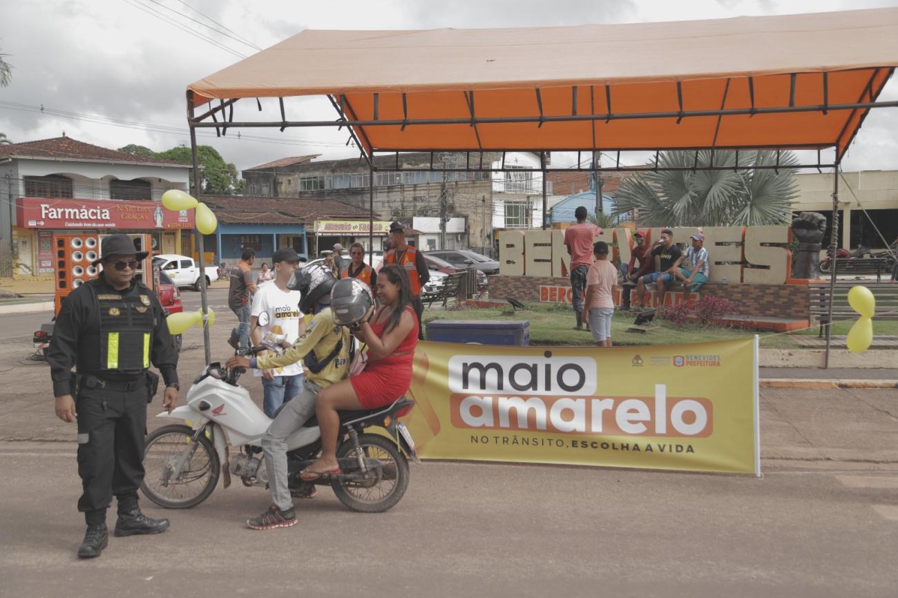 Duas ações, uma na sede do município e outra em Murinin, marcaram a abertura da campanha Maio Amarelo em Benevides. O trabalho visa conscientizar as pessoas sobre a importância da segurança no trânsito para reduzir o número de acidentes e de mortes.