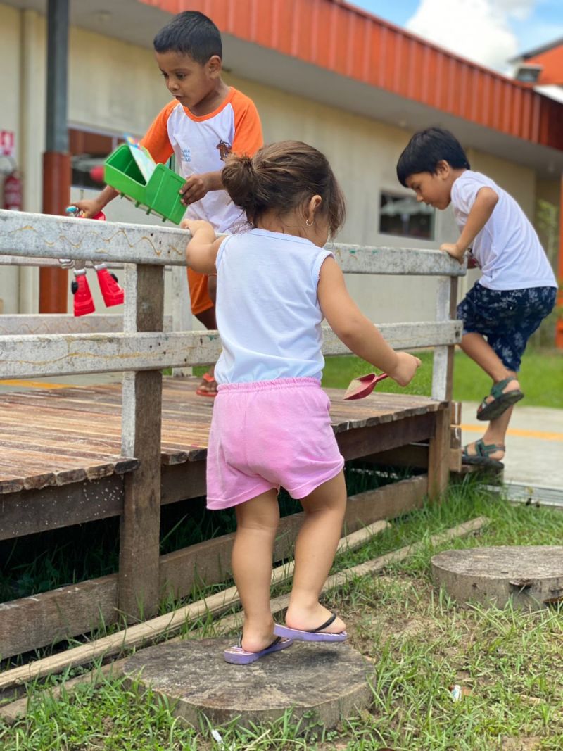 A SEMED mobilizou toda comunidade escolar da Rede Municipal de Benevides, especificamente da Educação Infantil, a ocuparem os quintais das escolas com as crianças, como áreas verdes, pátios naturalizados, para o brincar livre na natureza, estimulando a curiosidade, a descoberta, aprendendo limites e potências, e também a respeitar a natureza e conviver com as diferenças.