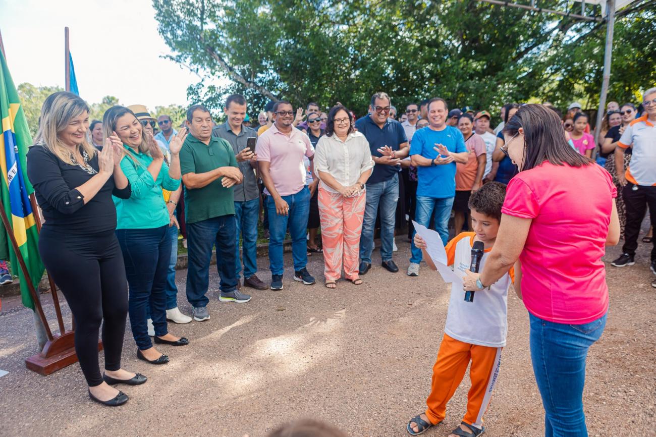 "Gostaríamos de agradecer pela iniciativa de realizar um sonho de muitos anos da comunidade de Santa Maria, nossa tão almejada orla", disse João Wesley, aluno do 1° ano, em nome dos alunos e servidores da Escola Angélica Salles.