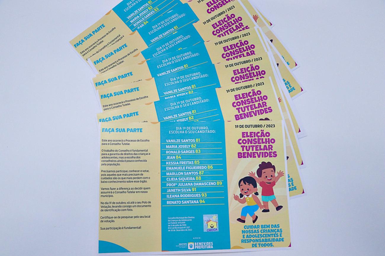 Foram apresentados na tarde da terça-feira, 12, os doze candidatos que irão disputar as cinco vagas para compor o Conselho Tutelar de Benevides. São eles: Vanilze Santos, Maria Josely, Ronald Sarges, Jean, Kessia Freitas, Emanuele Figueiredo, Marllon Santos, Cleia Siqueira, Profª. Juliana Damasceno, Janeth Silva, Ileana Rodrigues e Renato Santana. A eleição será no próximo dia 1° de outubro.
