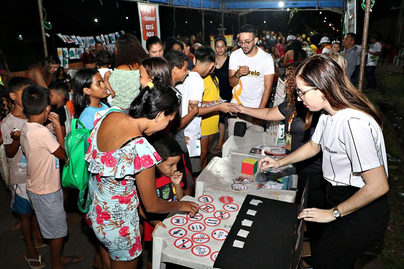 A criançada se divertiu de todas as maneiras em brincadeiras tradicionais como amarelinha, cabo-de-guerra, taco e dança das cadeiras, entre outras. Teve um extenso ateliê de pintura, jogos informativos, brinquedos, semeadura e distribuição de mudas e sementes, vacinação e informações sobre o banco de empregos mantido pela Prefeitura de Benevides. "Eu gostei muito. Quando vai ter no meu bairro?" perguntou Kauã Lima, 10 anos, morador do bairro Begolândia. Ele e uma turma de amigos chegaram de bicicleta, brincaram muito e ficaram até o final da programação. A comunidade do Santa Rosa, bastante participativa, também aproveitou para comemorar o asfaltamento de 2 quilômetros de vias do bairro. Foram as ruas John Kennedy, Herbert de Souza, Luther King, rua das Maçãs, Nilson Chaves, 19 de Março e Ayrton Senna. E mais: o Santa Rosa agora está com 100% de iluminação em led, melhorias que estão se expandindo para todo o município.