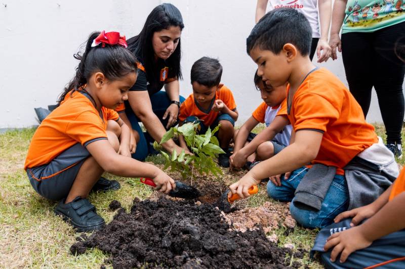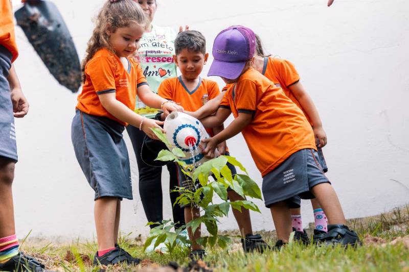 As crianças receberam informações sobre a importância de plantar para arborizar o planeta, começando pela cidade onde moram.