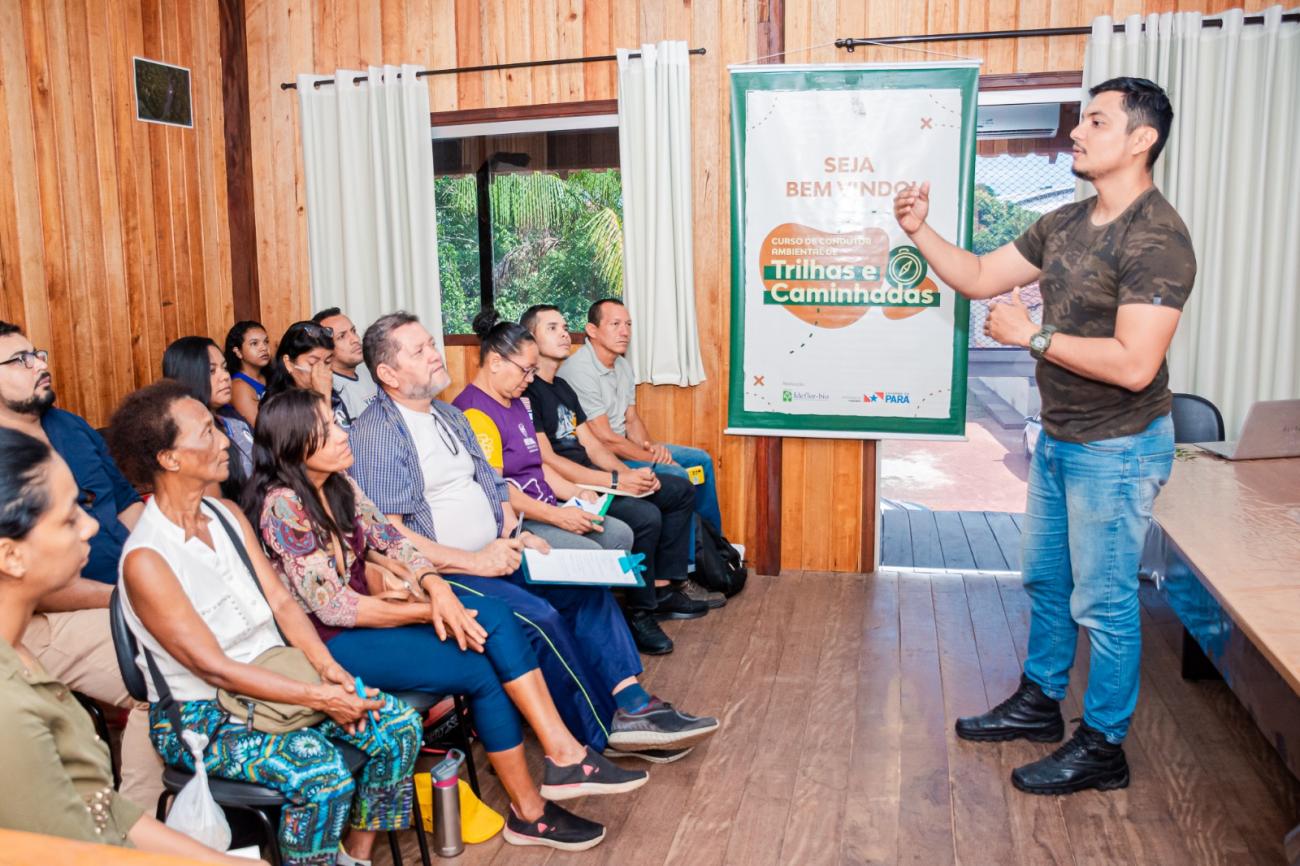 Teve início na segunda-feira, 25, o curso Condutor Ambiental de Trilhas e Caminhadas, mais um investimento da Prefeitura de Benevides na capacitação dos benevidenses e no cuidado com o meio ambiente. O curso, com duração de duas semanas, está sob coordenação da Secretaria Municipal de Meio Ambiente e Turismo - Semmat, em uma Parceria com o governo do Pará, por meio da Secretaria de Estado de Turismo, Ideflor-Bio e Corpo de Bombeiros. Na primeira parte, os alunos adquirem conhecimentos básicos sobre as Unidades de Conservação - o que são e como estão divididas e distribuídas - segurança, legislação, nós, amarrações e até noções de atendimento hospitalar. A parte prática será realizada na trilha do Pinheiral, na estrada do Taiassuí. As aulas estão sendo conduzidas pelo engenheiro ambiental Diego Barros.