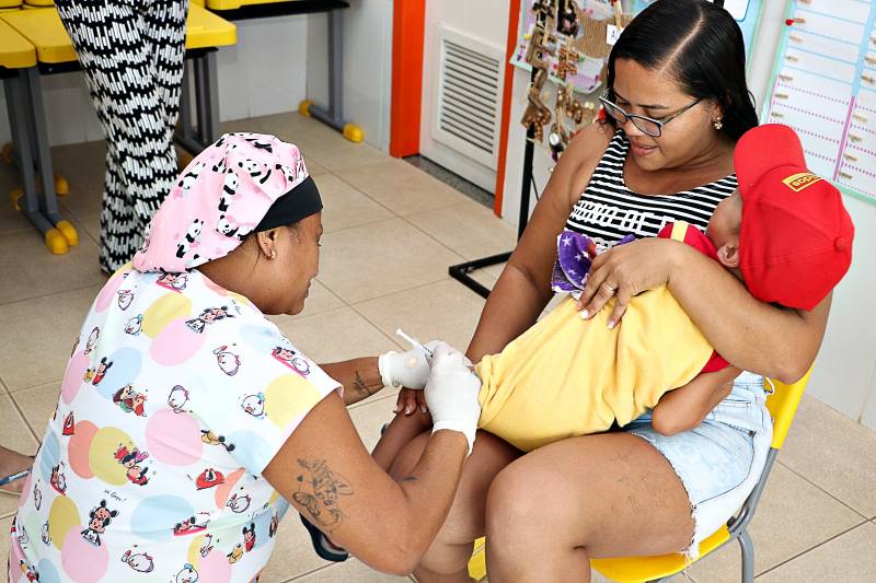 No posto instalado na CMEI Florescer teve choro. Levado pelos pais, Edinelson e Luciele, o pequeno Álvaro Vieira, de 2 anos de idade, aluno da CMEI, chegou com os irmãos menores de 4 anos e de 3 meses. Os pais das crianças destacaram que se preocupam muito com a imunização dos filhos. "As carteiras de vacinação estão em dia", afirmou a mãe. Mas, a dor provocada pela picada da seringa fez seu efeito e o choro das crianças ecoou pela sala. "É o choro da saúde", confortou a gestora Cida Seabra, que acompanhou toda a movimentação.