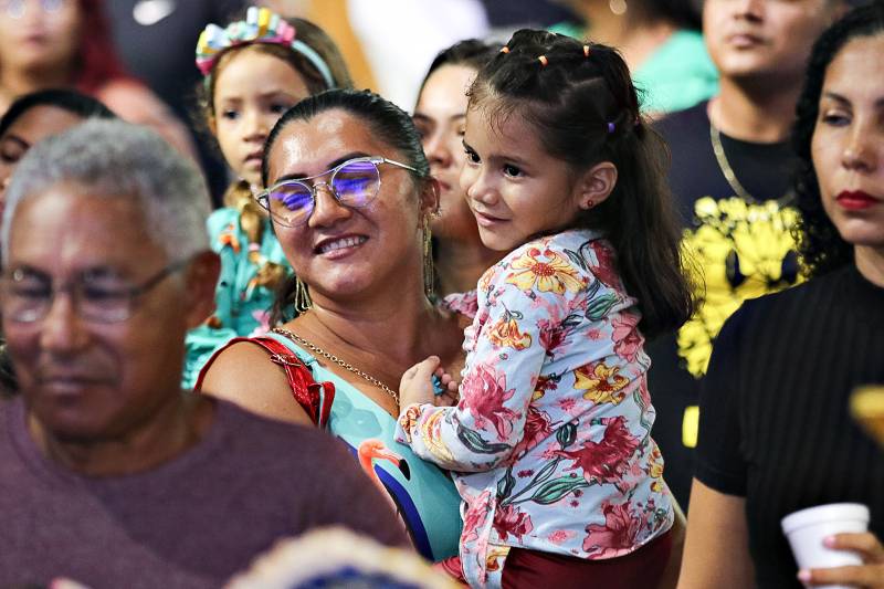 A prefeita de Benevides, Luziane Solon, expressou sua alegria e emoção ao ver famílias reunidas para a programação de Natal: “Eu digo que essa é a maior obra que nós temos: cuidar das pessoas, é realmente olhar as famílias, e o Natal representa isso, a oportunidade de vocês estarem em família.”