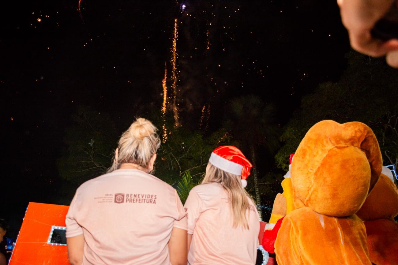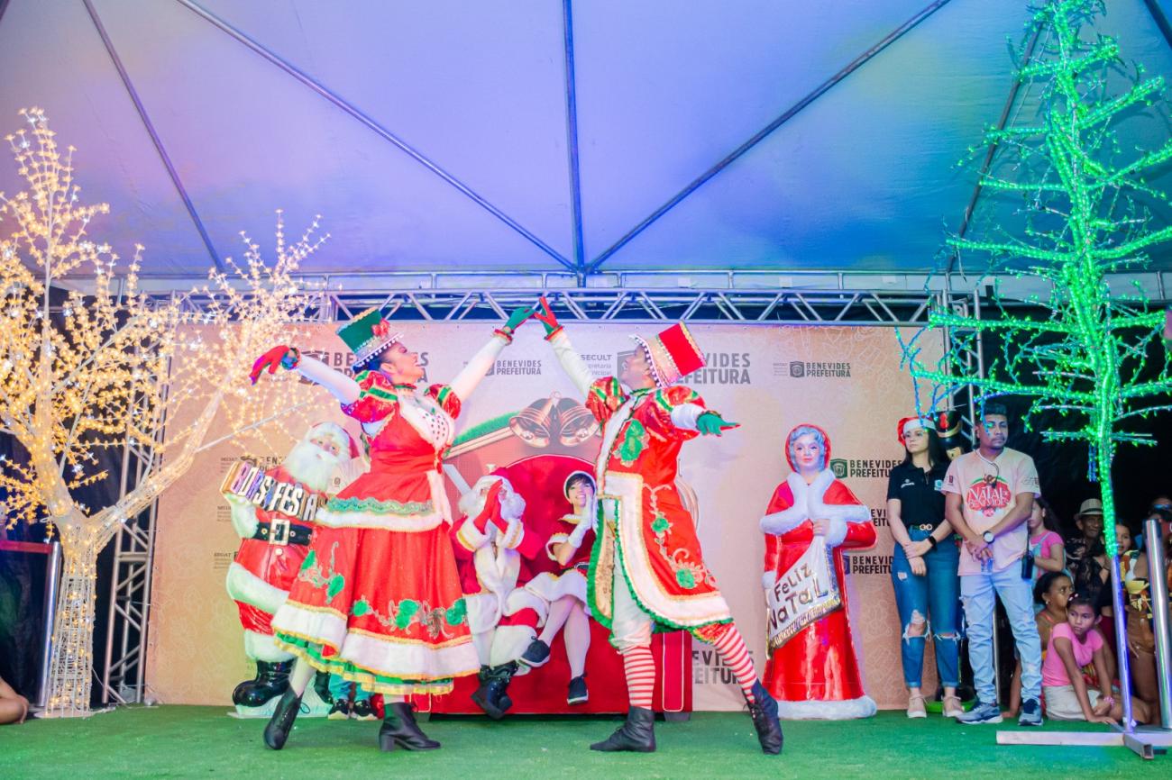 O acender das luzes natalinas na praça central de Murinin, sábado, 16, cumpriu a sequência da programação organizada pela Prefeitura de Benevides.
