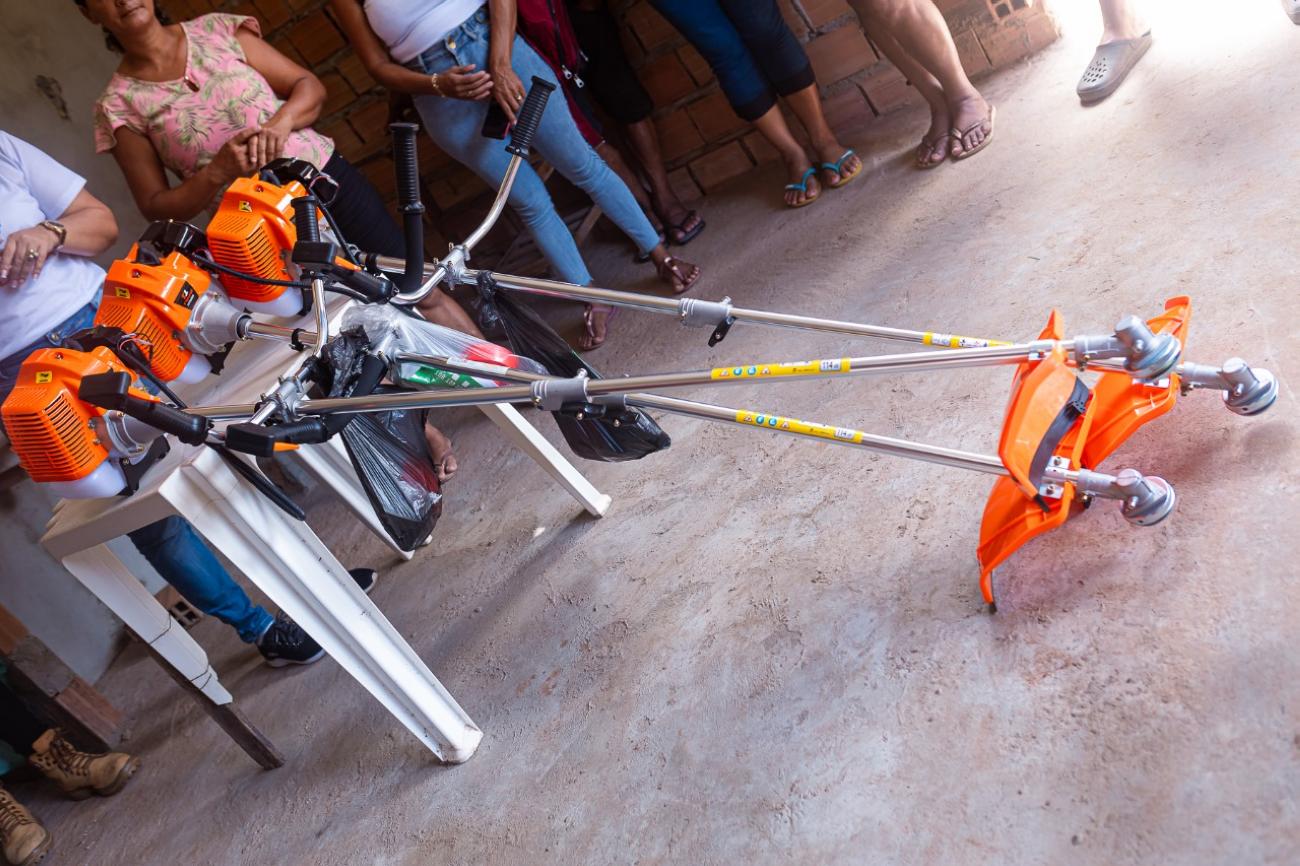 A entrega contou com a presença da secretária de agricultura, Edivana Lima, e de uma equipe técnica. "A importância das roçadeiras para os nossos produtores acontece principalmente no controle das pragas e de doenças também, porque tem alguns agentes que ficam no solo, no mato, que pode trazer alguns malefícios. Então a roçadeira serve justamente para isso, e consequentemente melhorando o plantio, a produção. Fazendo com que esse produtor tenha uma renda e uma produção de qualidade", disse Giovana Ferreira, engenheira agrícola da SEMAGRI.