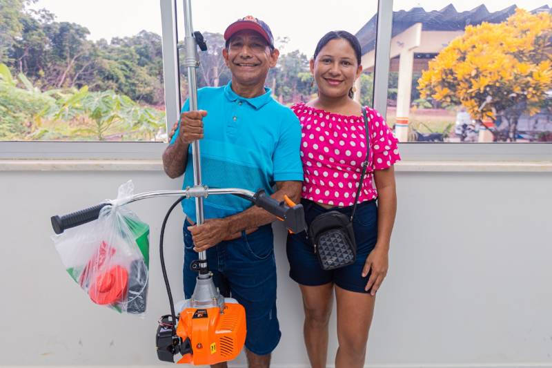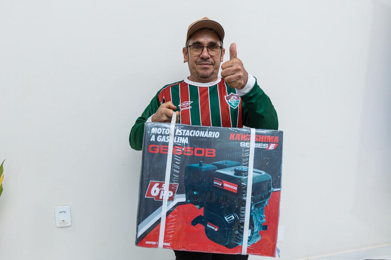 “Eu quero agradecer de coração ao pessoal daqui da SEMAGRI, que estão dando assistência para os agricultores também. Inclusive, um técnico deles foi na minha área, fez o levantamento do solo, da terra, que eu não tinha. Agora eu já estou assim, com o levantamento do solo em mão. E eu estou muito feliz com isso. Agora eu já posso aplicar o adubo adequado”, declarou Carlos Sodré, um dos produtores contemplados com uma roçadeira.