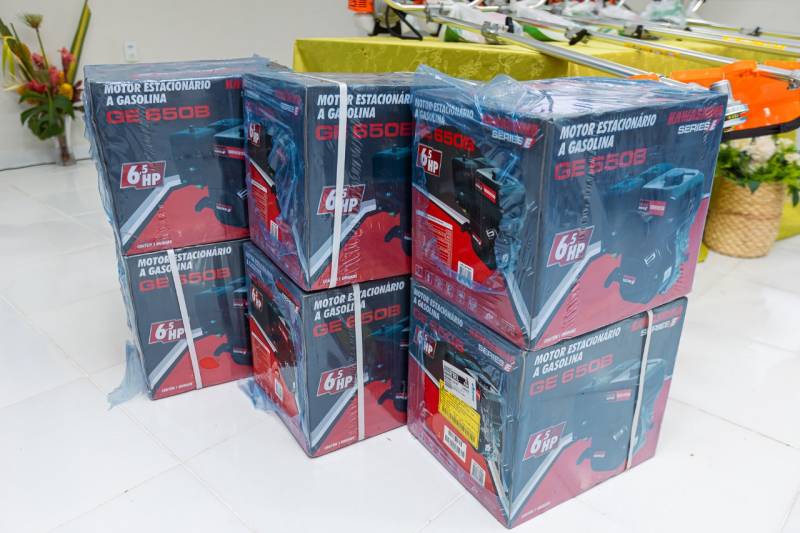 No último dia do seminário, sexta-feira (02), também aconteceu a finalização do ciclo de entregas, iniciadas em 2023, dos equipamentos entregues pelo Pará Rural para produtores locais, foram 11 roçadeiras e 6 motores rabeta.