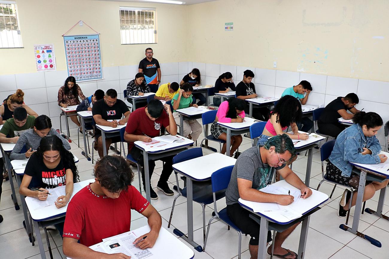 Estudantes fazem a prova do Processo Seletivo para o Aprova Benevides 2024