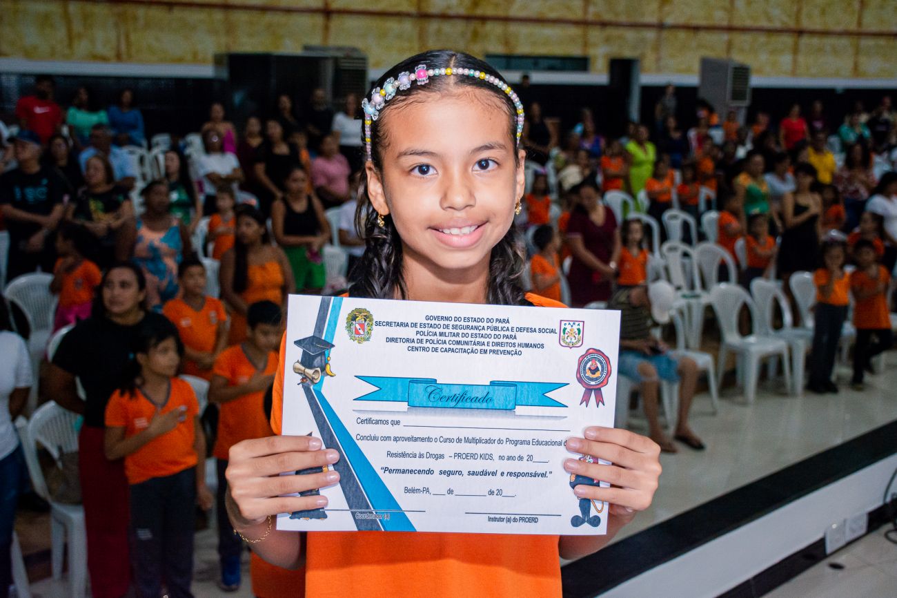 Na última quarta-feira, 19, a Prefeitura de Benevides, por meio da Secretaria Municipal de Educação (SEMED), promoveu a formatura das crianças que participaram do curso do Programa Educacional de Resistência às Drogas e à Violência (PROERD), em parceria com a Política Militar.