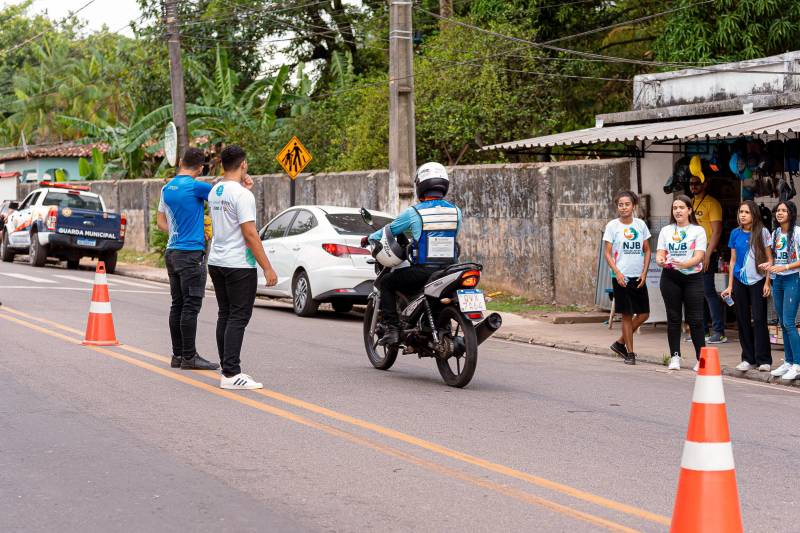 A ação de sensibilização dirigida aos condutores de veículos automotores contou com a participação especial de estudantes da Escola Estadual de Ensino Médio e Técnico Ana Teles e por integrantes do Núcleo Jovem Benevidense (NJB), com apoio da Secretaria Municipal de Defesa Social, Transporte e Trânsito – SEMDESTRAN, e da Guarda Municipal de Benevides.