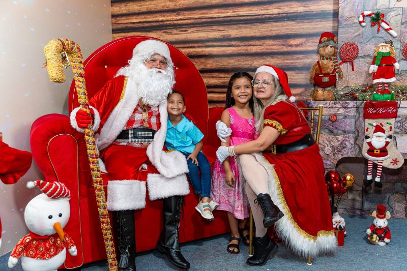 O ponto alto da noite foi a abertura da Casa do Papai Noel e um animado pocket show infantil.
