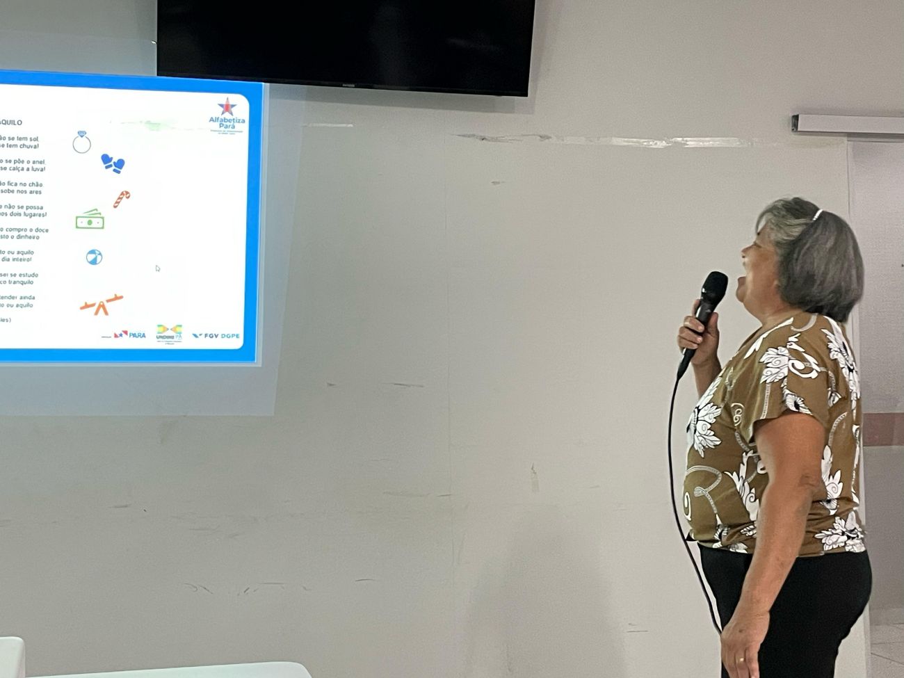 O encontro foi ministrado pelas professoras formadoras Cássia de Lima e Mara Simone, por meio do Programa Alfabetizando Benevides Criança (ABC), que explanaram sobre práticas pedagógicas para melhorar o desempenho dos alunos na alfabetização nas áreas da língua portuguesa e da matemática para desenvolver pensamentos matemáticos.