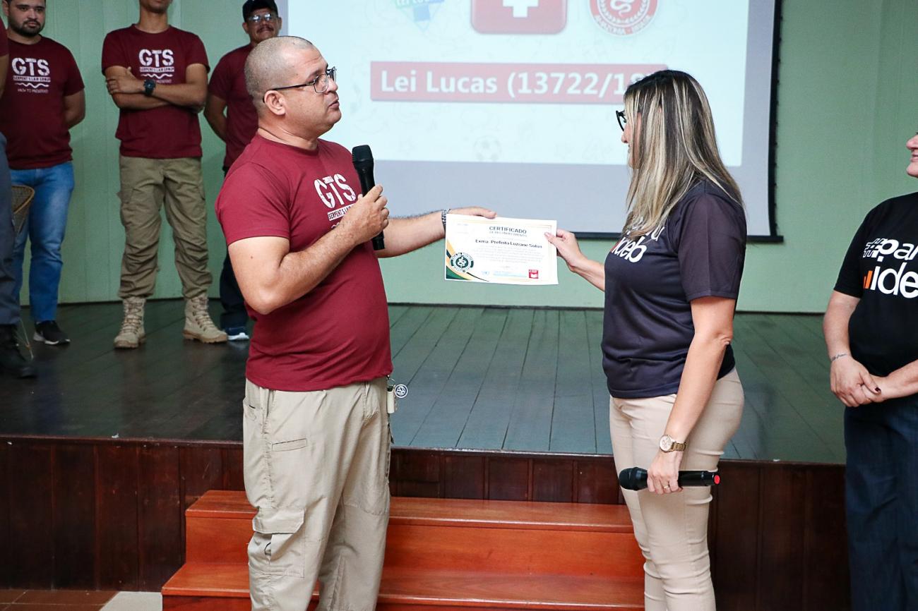 Na oportunidade, a Prefeita Luziane Solon recebeu o Certificado de Reconhecimento pelo compromisso, esforço e dedicação com a qualidade da educação no Município de Benevides. A Chefe do Poder Executivo agradeceu ao trabalho realizado pelos instrutores e reforçou seu compromisso com as crianças: “Eu tenho certeza que vocês fazem um trabalho incrível, solidário, estão fazendo realmente de forma gratuita aqui a formação para os A.T.E., então, muito obrigada pela atenção. A gente faz esse trabalho porque entende que as nossas crianças precisam do apoio, elas precisam desse cuidado”, disse em seu discurso.
