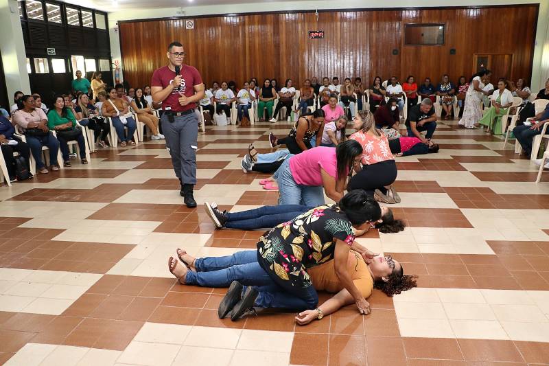 “Estou em mais uma formação de extrema importância para todos nós, até porque ficamos capacitados não só para cuidar das nossas crianças, mas também para a nossa família. Então, conhecimento nunca é demais, pois a qualquer momento, podemos estar diante de uma situação de risco, então, estaremos preparados. Muito obrigada”, relatou Eduarda Sampaio, A.T.E. no Centro Municipal de Ensino Infantil, Florescer.
