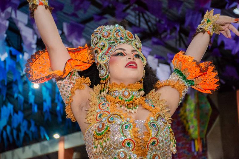 Em seguida, foi a vez da quadrilha Rainha Junina, de Santa Isabel do Pará, que trouxe um verdadeiro "Arraial dos Deuses" ao palco, misturando a cultura popular com a mitologia grega. A miss Afrodite foi um dos destaques da noite. “A gente ensaia há oito meses e estamos muito felizes com a nossa apresentação. Foi uma noite histórica!”, afirmou o coordenador de ensaios Edimar Cardoso.
