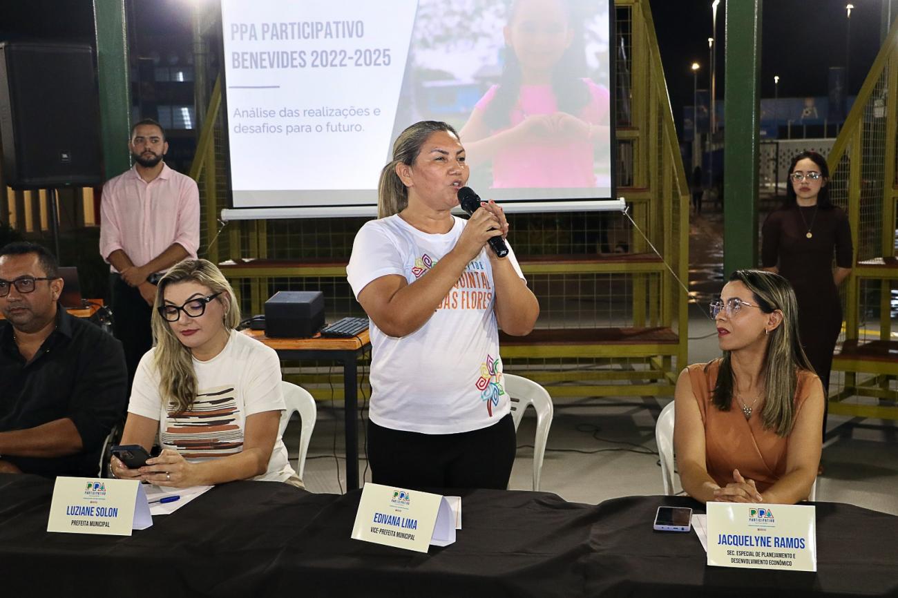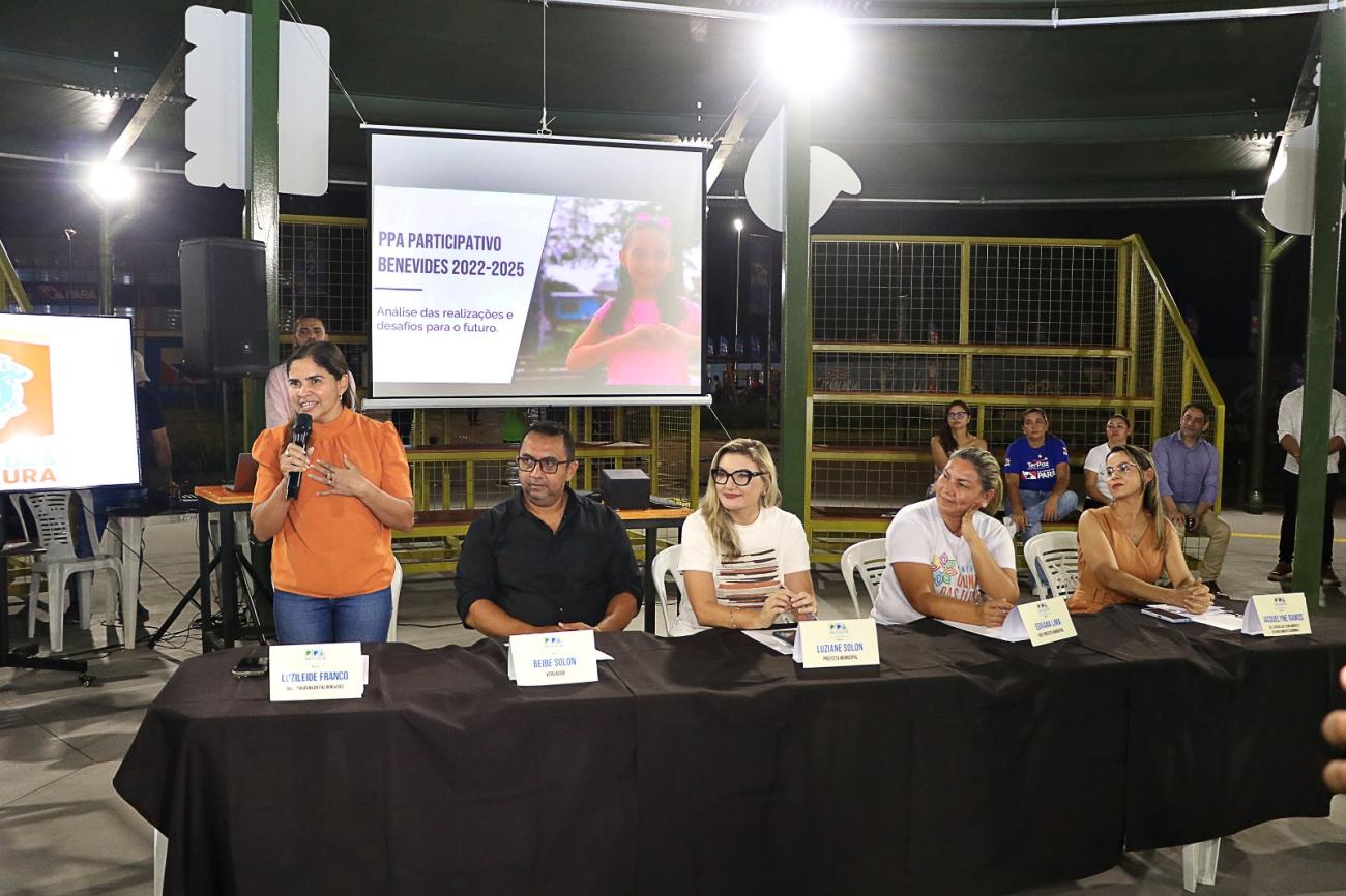 Duas audiências públicas foram promovidas em Benevides para preparação do Plano Plurianual - PPA quadriênio 2026/2029. A primeira reunião foi na Usina da Paz, na terça-feira, 10, contando com a participação de moradores dos distritos de Santa Maria, Benfica e Murinin. A segunda, na Câmara Municipal, foi realizada dia 11 e contou com a presença de moradores da sede do município. Representantes do Poder Público apresentaram um balanço dos serviços, ações e avanços destes últimos quatro anos de gestão, ressaltando que tudo foi elaborado e realizado a partir das principais demandas vindas das comunidades, alinhadas ao orçamento municipal e proveniente de convênios com o Estado e a União. Agora, é o início de mais esta etapa.