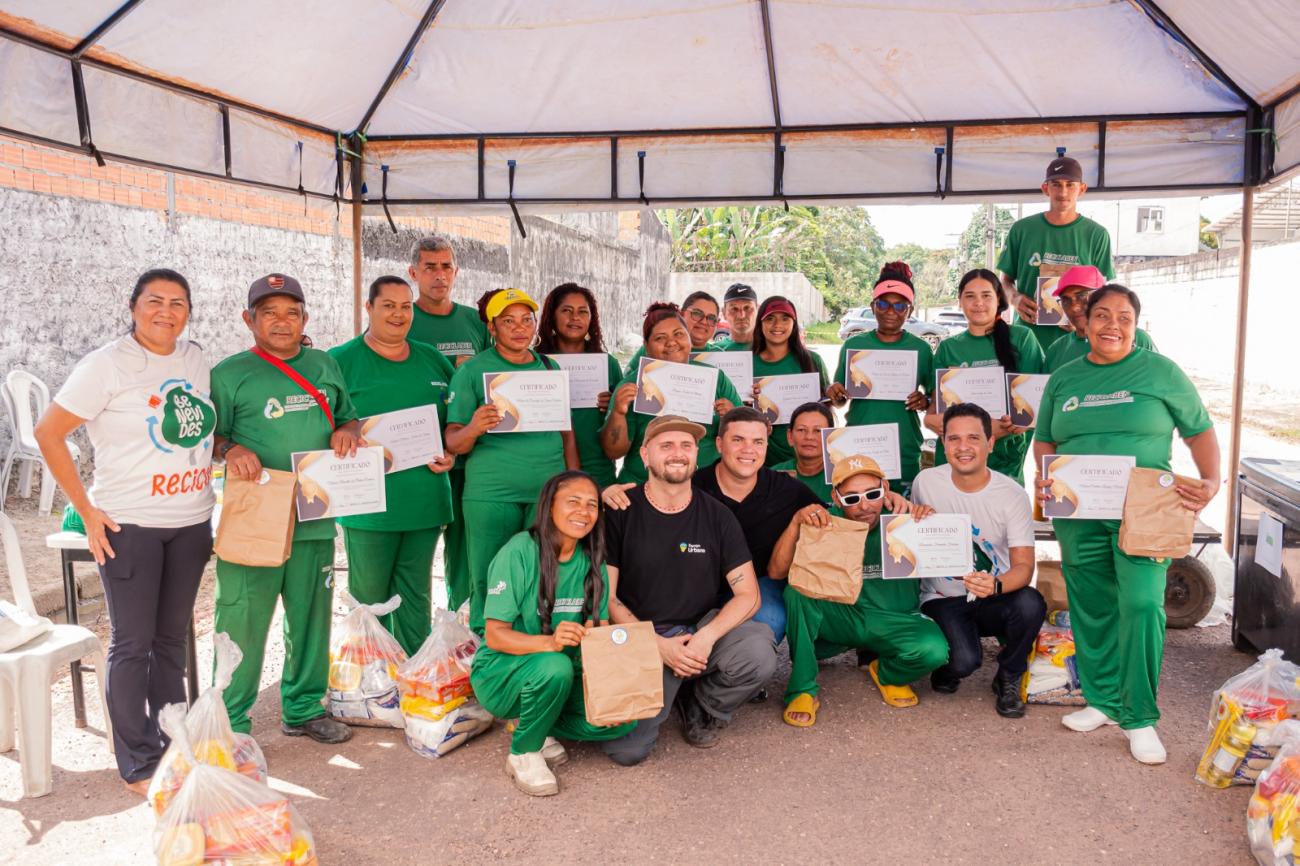 O mutirão na ReciclaBen também foi um momento de celebração e reconhecimento. O evento incluiu a entrega de cestas básicas e a certificação de todos que participaram e cooperaram nos quatro módulos do curso de capacitação do Programa Nacional Recicla Cidades, desenvolvido pela associação Espaço Urbano.