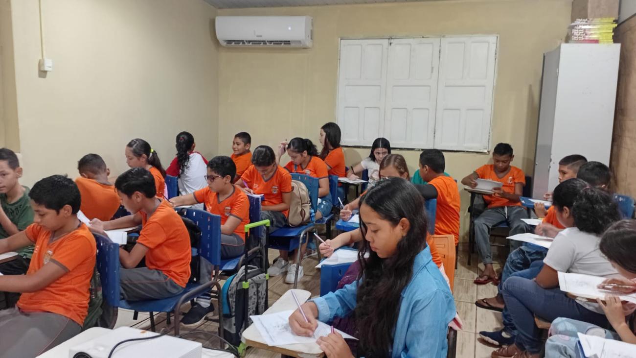 Os alunos reuniram-se nas escolas, com auxílio da equipe gestora. Durante a aula, tiveram a oportunidade de consolidar os conhecimentos já adquiridos, por meio de exercícios que visam esclarecer dúvidas de forma eficiente.
