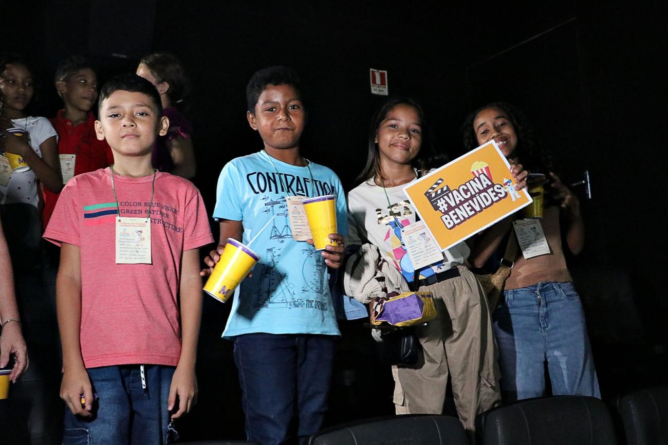 Em uma iniciativa que une saúde, educação e entretenimento, a Prefeitura de Benevides, em parceria com a rede de cinemas Cine System, realizou o projeto “Cultura que protege – Vacinação com diversão!”. Nesta terça-feira (26), quarenta crianças de 9 a 14 anos com o calendário vacinal completo foram premiadas com uma sessão de cinema especial no Shopping Metrópole, incluindo pipoca e bebida.