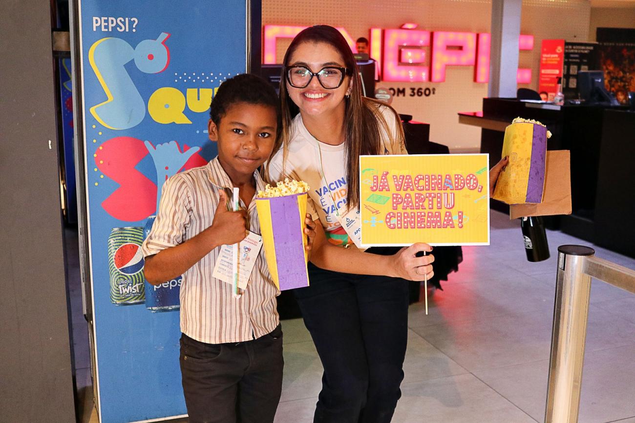 Crianças com o calendário vacinal em dia ganharam um dia especial de cinema no shopping..