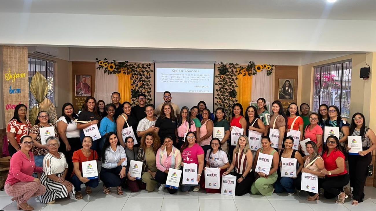 Nesta semana, os professores das Escolas Janete Lopes, Antonina Garcia, Santa Maria Bertilla, CMEI Berço da Liberdade e CMEI Izaura de Queiroz receberam formação sobre educação para o trânsito. Essas escolas fazem parte de um projeto piloto. A formação é parte do Projeto “Educação que Transforma Vidas”, desenvolvido pelo DETRAN em parceria com as secretarias de educação, tanto estadual quanto municipal. Teve início em Belém, sendo estendido para os Municípios de Benevides e Marituba, os três primeiros selecionados para esta primeira fase, e visa capacitar educadores para promover um trânsito mais seguro.