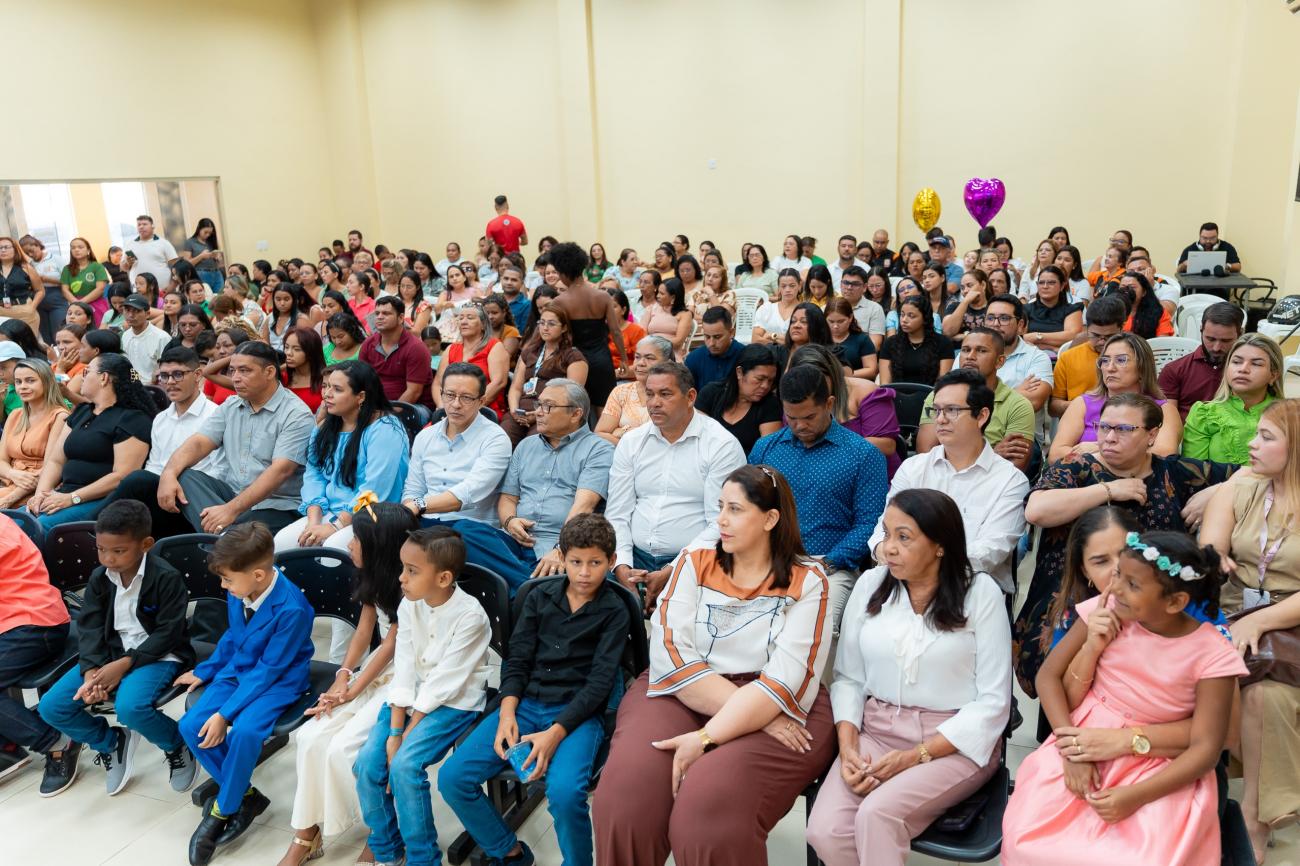 Plenário lotado com as famílias das crianças eleitas nas escolas municipais