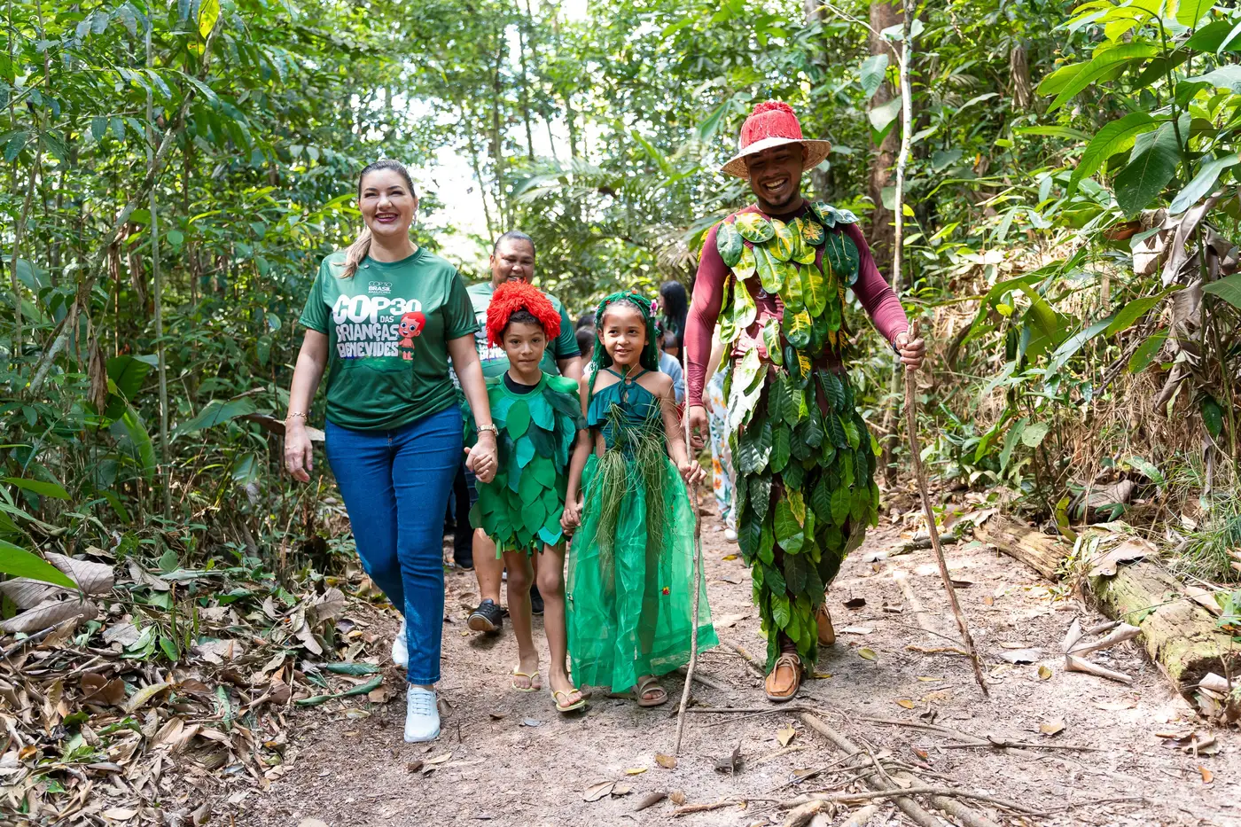Na entrada do evento, o pequeno Caio, de 7 anos, e Laura, de 6, já demonstravam profunda conscientização. Laura estava vestida de "Amazônia" e Caio representava o Curupira, o protetor da floresta. "Tem caçadores que querem matar os animais e cortar as árvores e o Curupira protege a Amazônia", explicou a menina. Já Caio deu uma verdadeira lição sobre o descarte irregular de lixo: "Alguns materiais eles demoram muito a se decompor, tipo o copinho descartável que a professora me ensinou que demora 200 anos pra se decompor na terra."