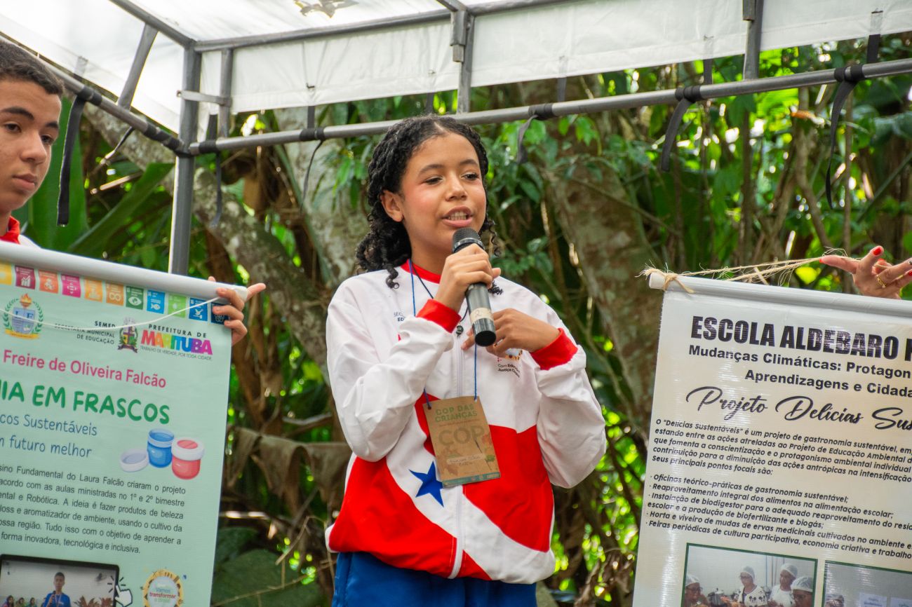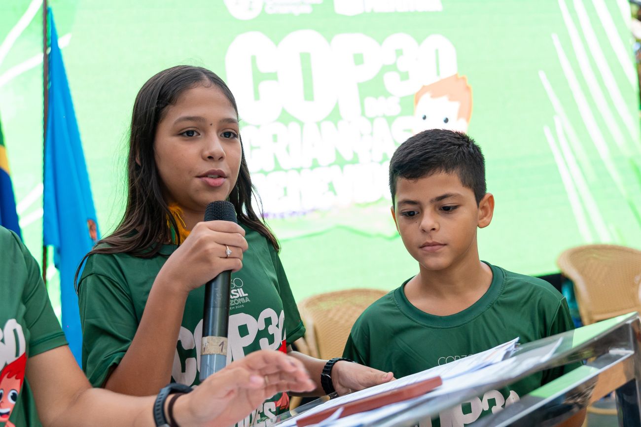 Durante a manhã do primeiro dia da COP das Crianças, elas já surpreenderam as autoridades municipais, estaduais, representantes do governo federal e da UNICEF - presentes no evento - com diversos questionamentos sobre sustentabilidade, preservação da floresta em pé, novas opções de combustíveis, reciclagem de resíduos, entre outros temas cruciais. A iniciativa atende ao desafio de dar voz às crianças que vivem na Amazônia e levar suas ideias e sugestões diretamente para as discussões da COP 30, que será realizada na capital paraense nas próximas semanas.