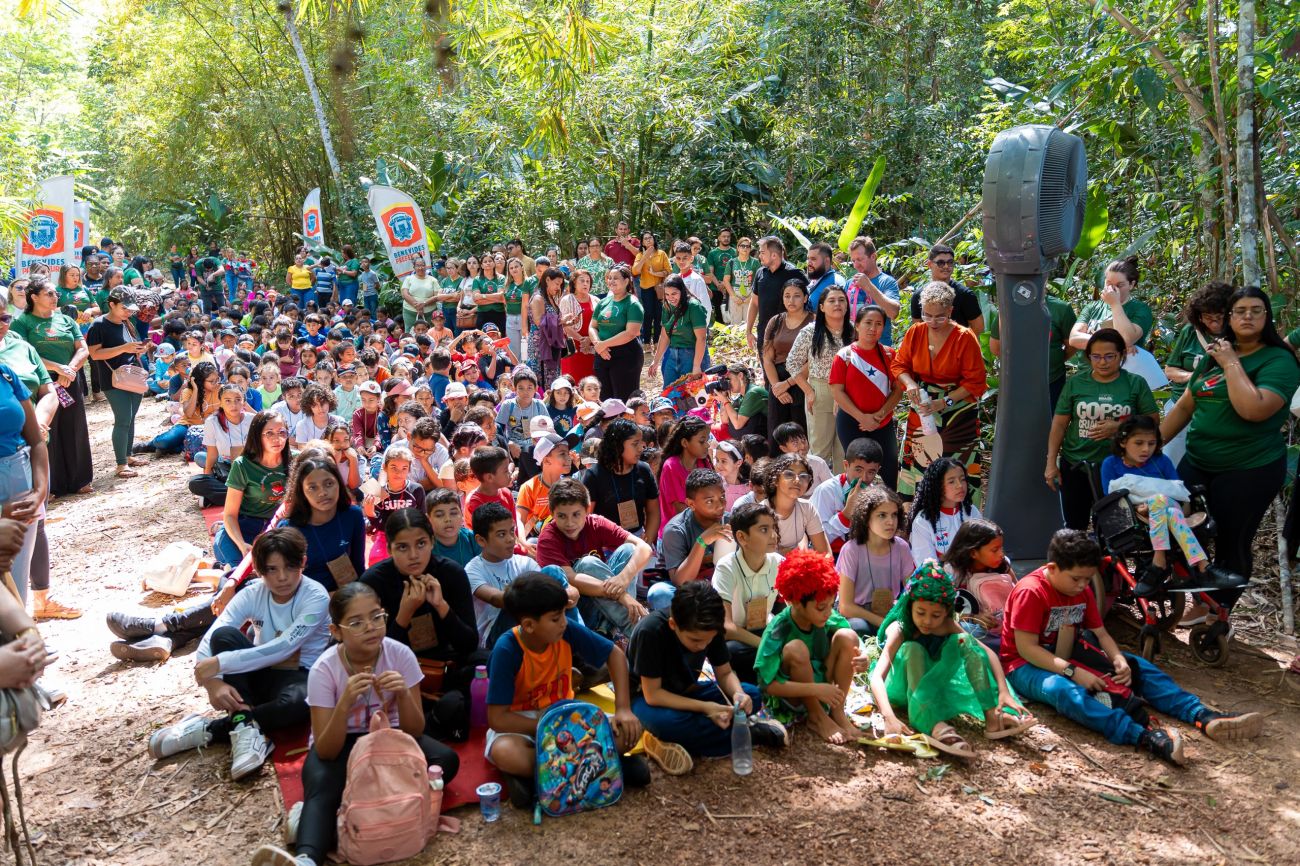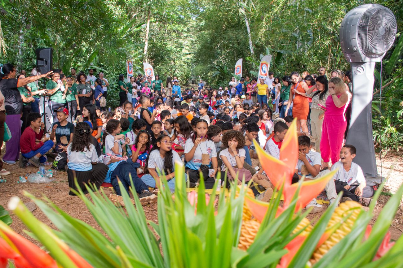 Vozes da Floresta: encontro reúne mais de 300 crianças de Benevides, Marituba, Ananindeua e Belém no Garden Mariápolis com atividades culturais, educação ambiental e debates sobre sustentabilidade na Amazônia.