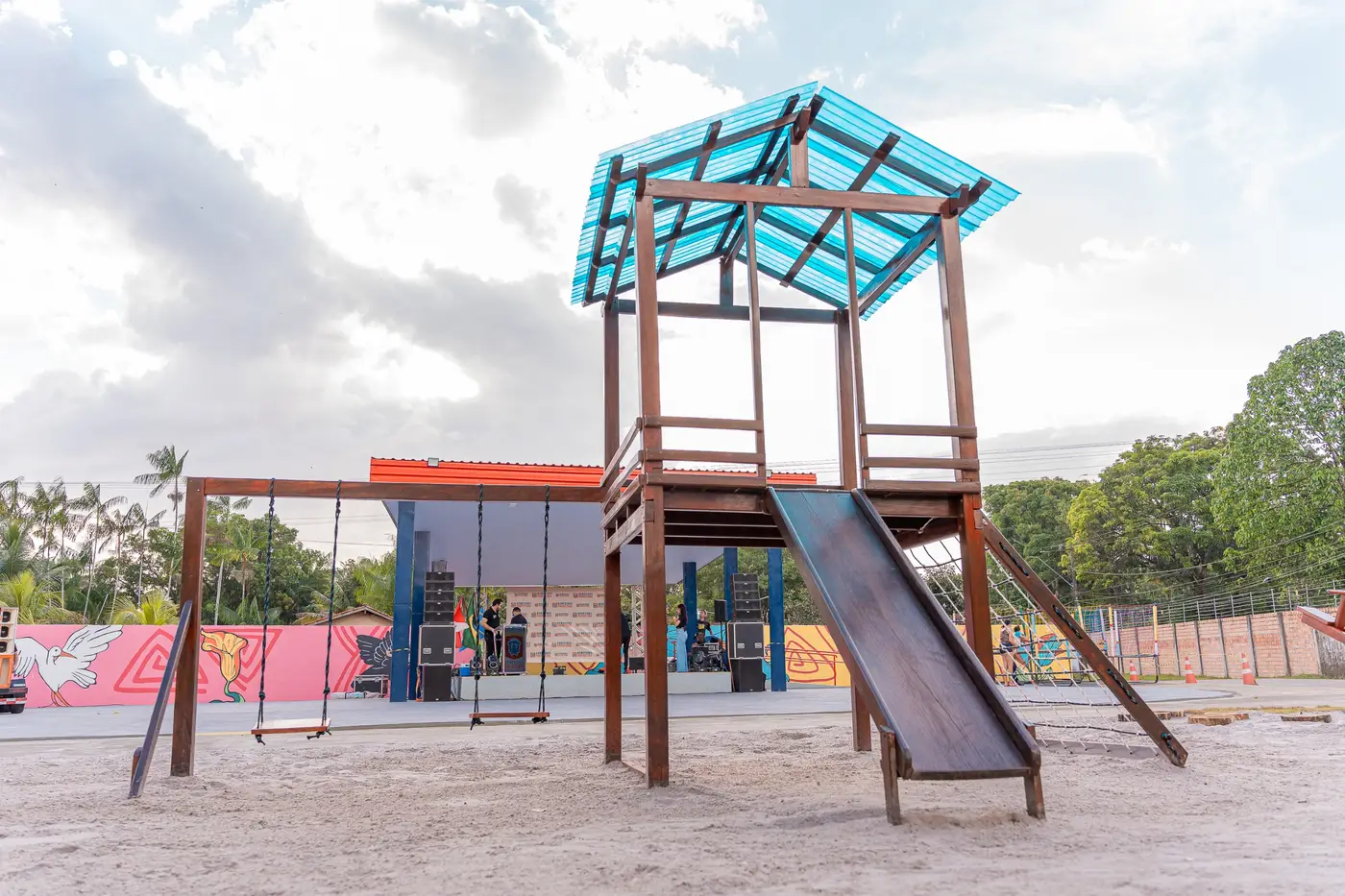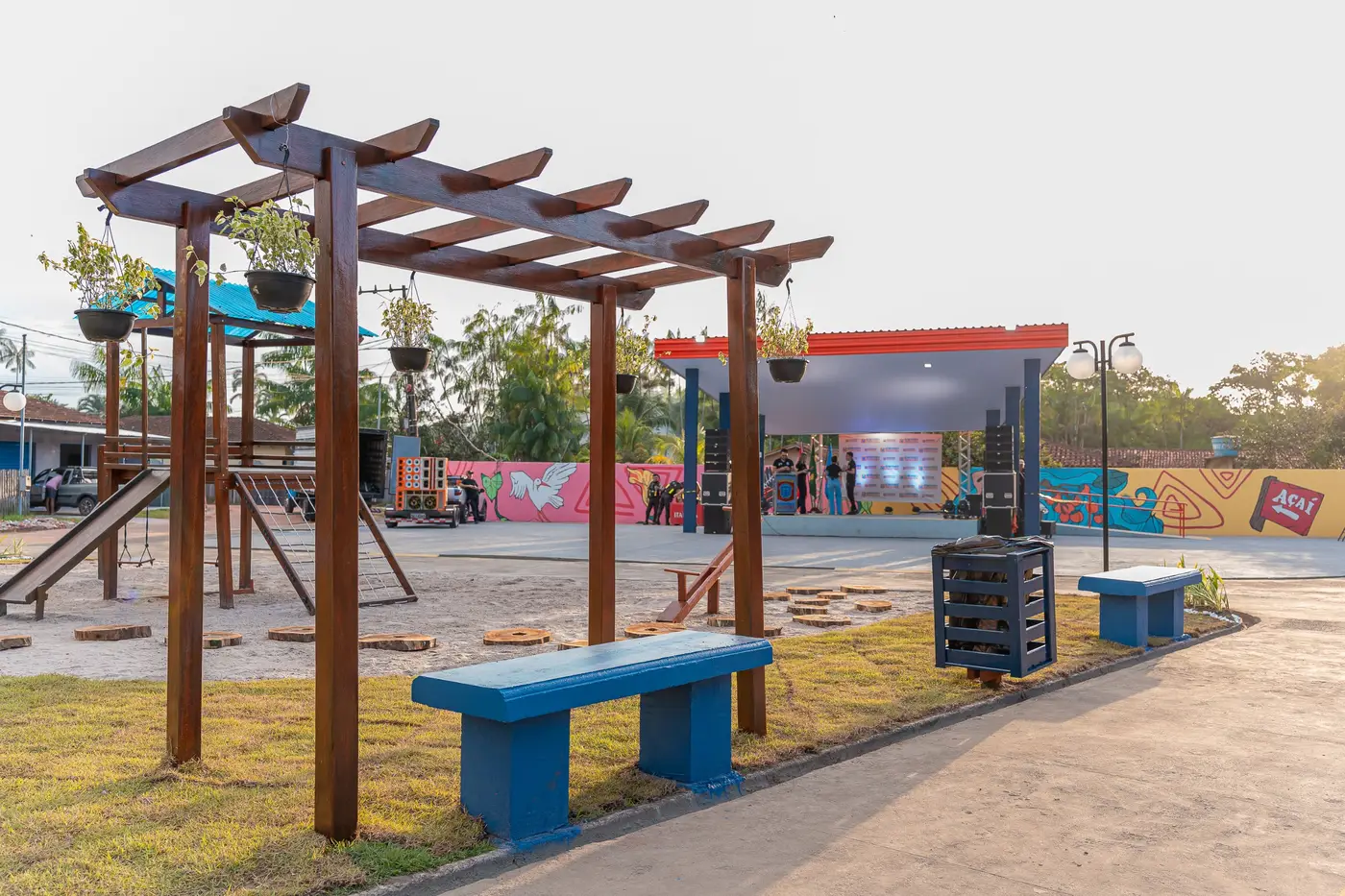 O local voltou a se tornar ponto de encontro e lazer para as famílias. A obra inclui playground, paisagismo, áreas de convivência, nova iluminação, grafitagem regional nos muros e um palco projetado para receber apresentações culturais, eventos religiosos e comunitários.