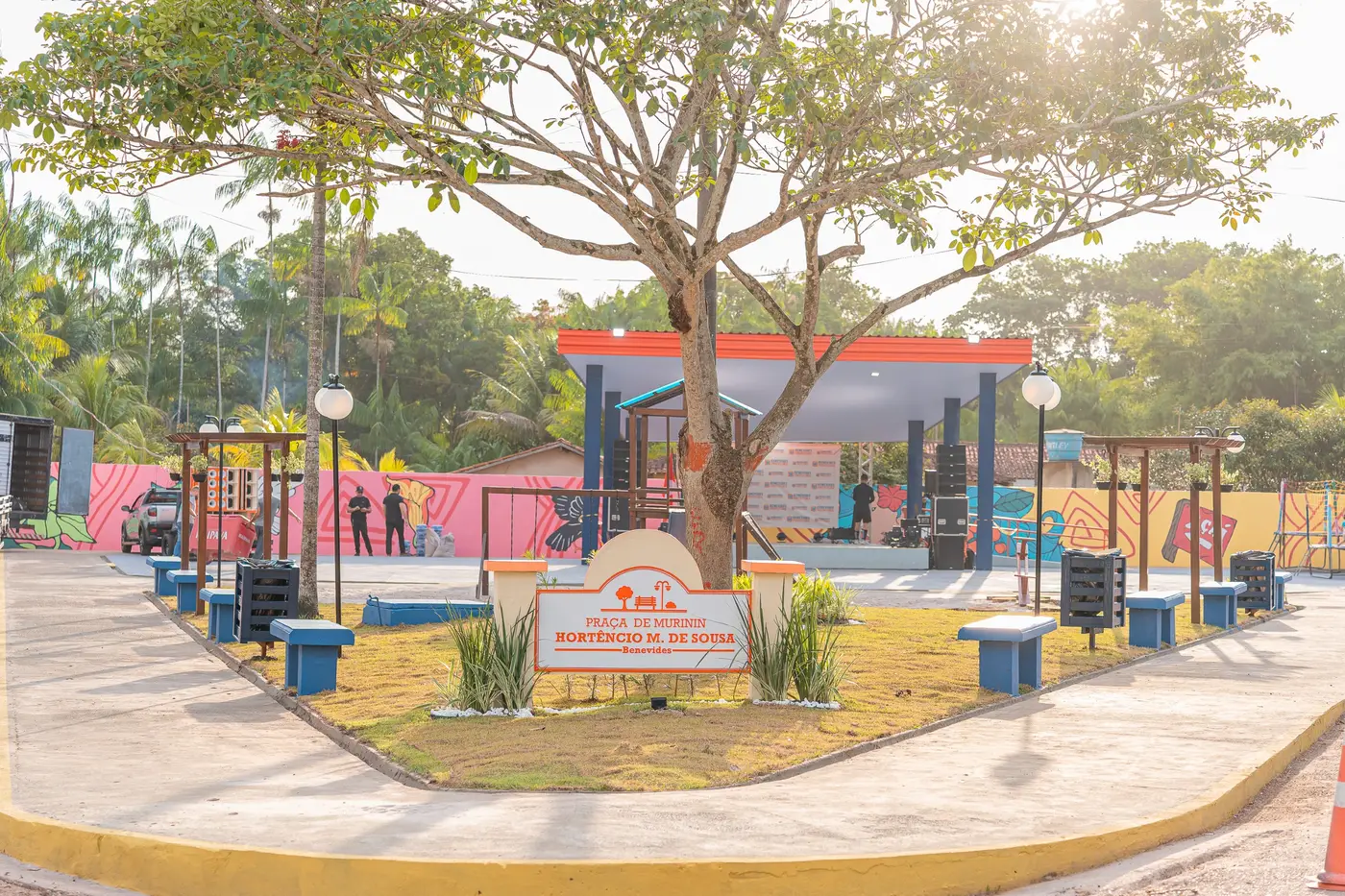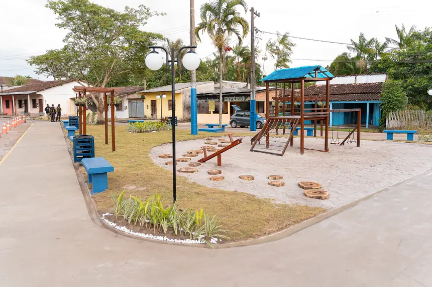 Novo espaço público oferece playground, paisagismo, nova iluminação, palco para eventos culturais e religiosos, áreas de convivência e contribui para fortalecer lazer e comércio local, além de celebrar a memória de Hortêncio Monteiro.