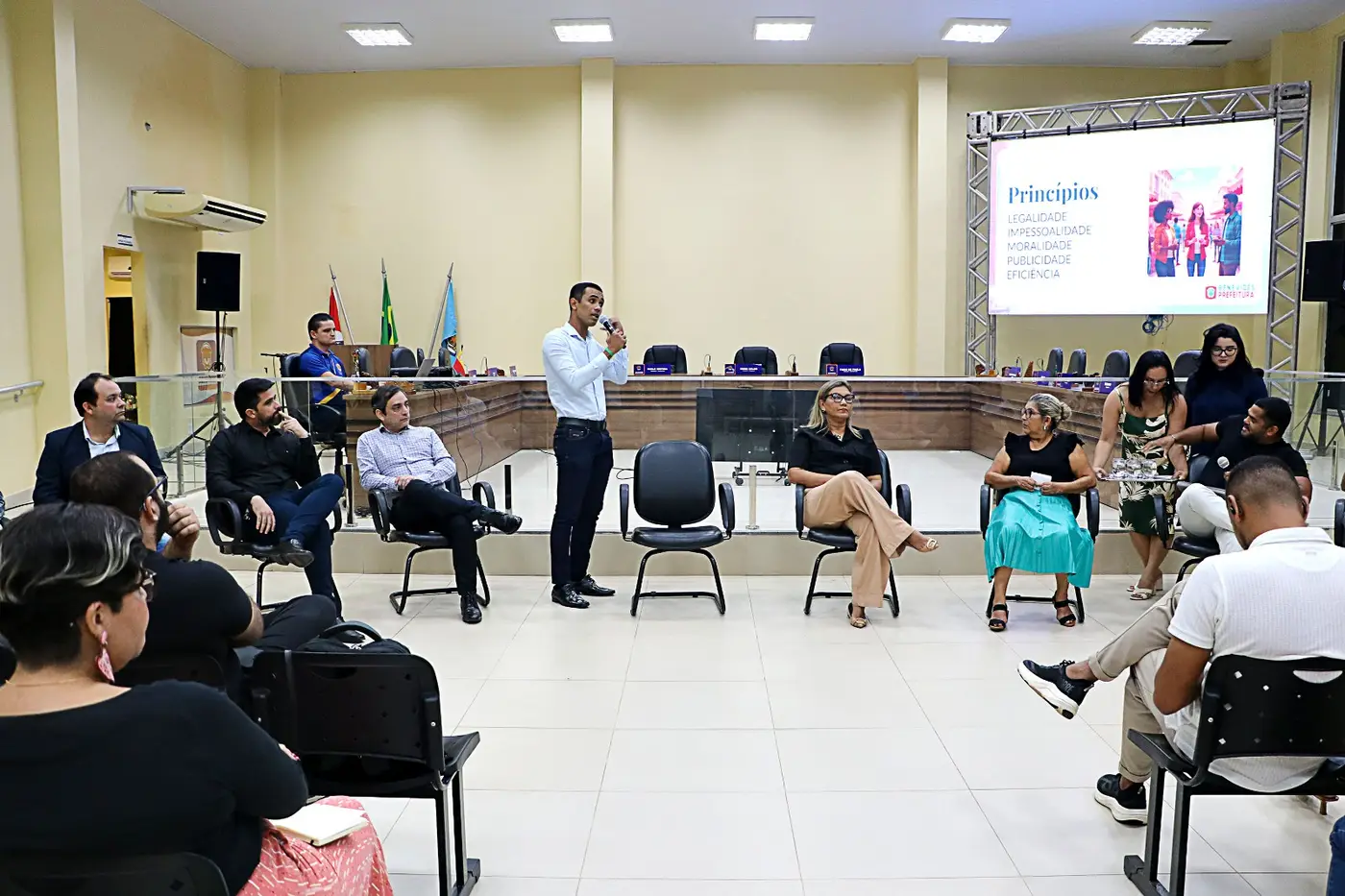 O encontro de orientação reuniu servidores públicos municipais, empreendedores, representantes do Poder Legislativo, procurador do município, contadores, especialistas em licitação e equipes das secretarias de administração e planejamento do município de Benevides (SEMAD / SEPLADE).