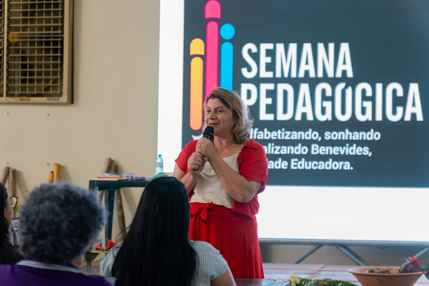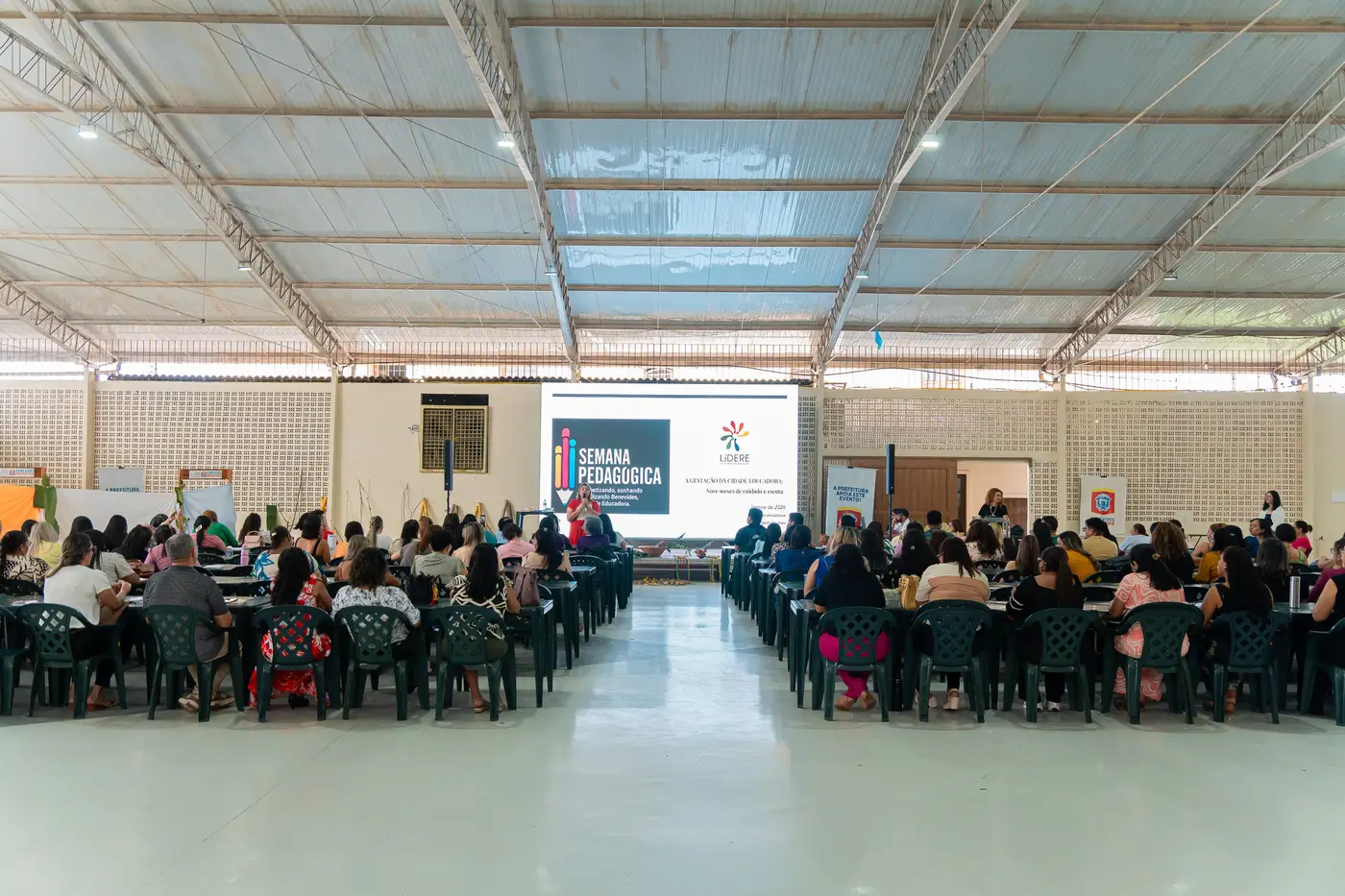 Professores da Educação Infantil (creche, pré-escola, professores suporte e ATEs), bem como Gestores e Coordenadores receberam três dias de formação conduzida pela Educadora Vasti Ferrari, em conjunto com o Professor Dr. Luiz Carlos Ramos na Semana Pedagógica, realizada pela Rede Municipal de Ensino de Benevides.