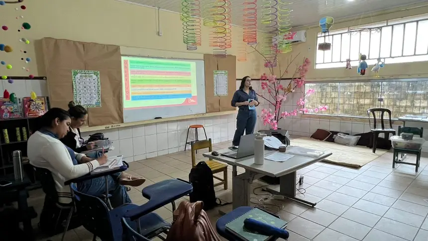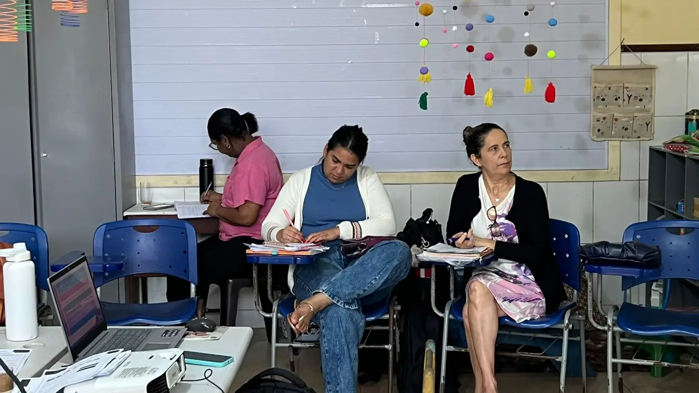 “Cada treinamento e participação em atividades de formação representa uma oportunidade de aprendizado e desenvolvimento, agregando valor ao nosso conhecimento. Participar desses encontros é de grande importância, pois ao nos depararmos com os desafios e, por vezes, com o desânimo, diante da incerteza sobre como proceder e qual caminho seguir, as formações se apresentam como um guia, uma espécie de bússola, orientando cada profissional. É essencial que estejamos totalmente presentes e focados, para que possamos absorver o conhecimento que buscamos. A cada formação, descobrimos algo novo e relevante, como uma caixa de surpresas. Os momentos de aprendizado têm sido extremamente valiosos, proporcionando informações muito ricas.”, disse Nara Conceição Barata, professora da turma de 1º ano da escola Madre Tereza.