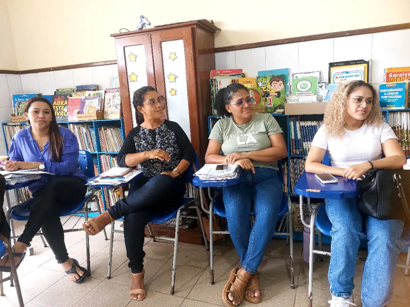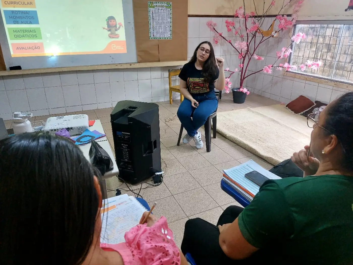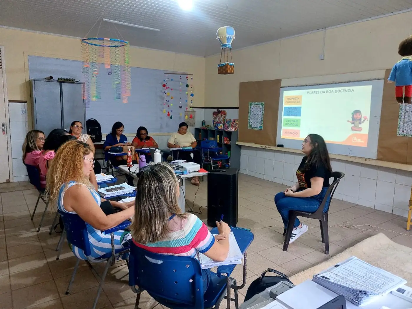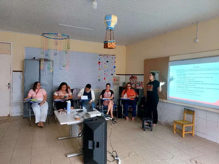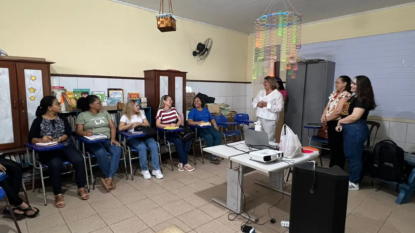 A importância do texto como instrumento de trabalho, a rotina em sala de aula, a avaliação e o embasamento em documentos curriculares norteadores, como a Base Nacional Curricular Comum (BNCC), foram tópicos relevantes ao longo das sessões.