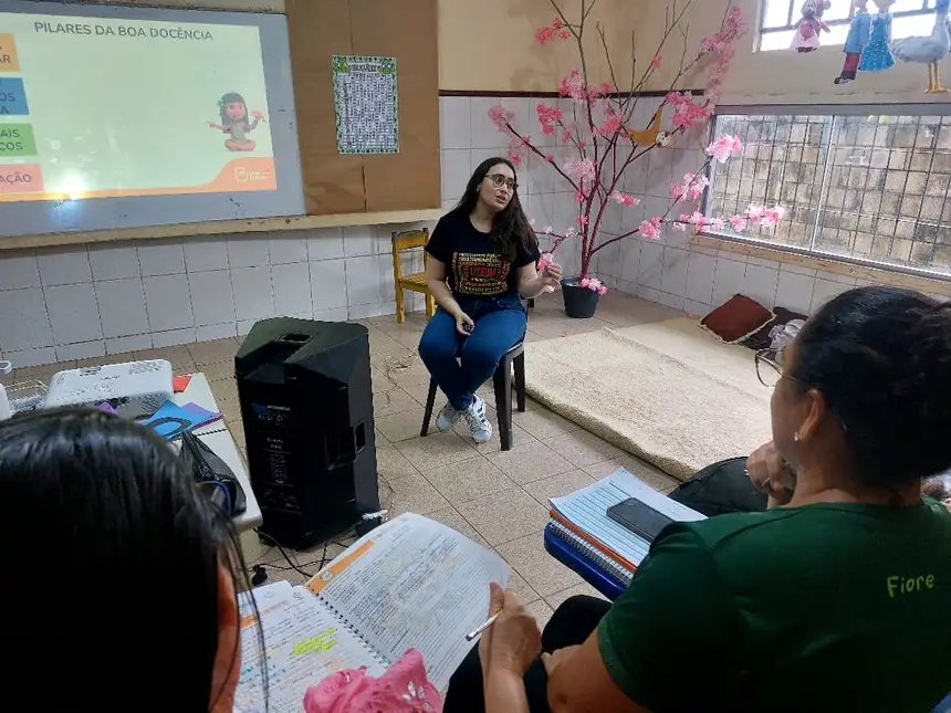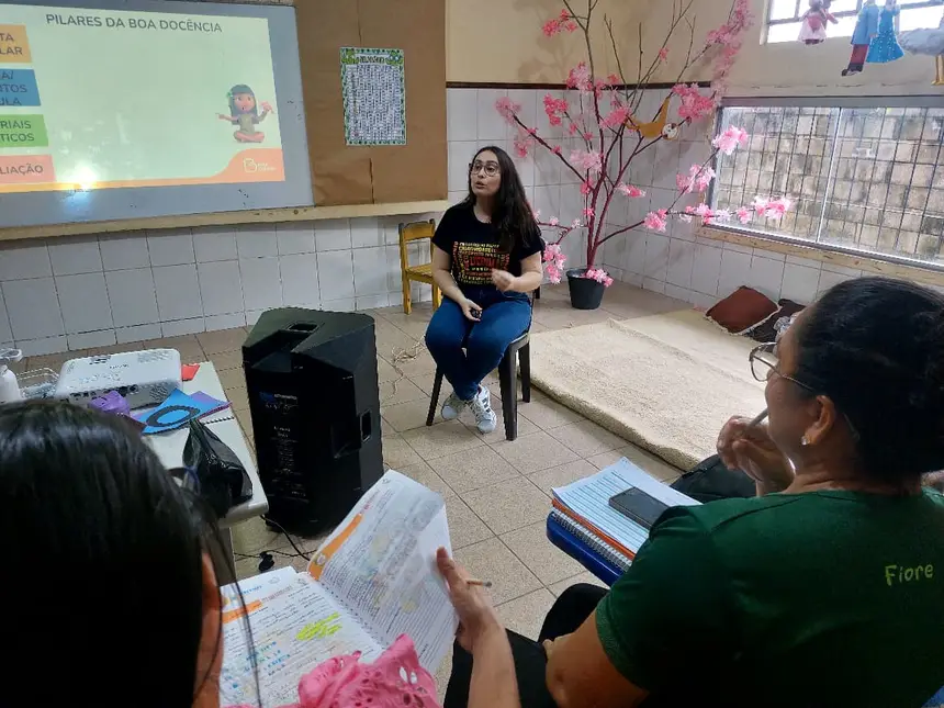 A primeira semana deste mês de março foi iniciada com as Formações Continuadas de Ciências Humanas e Ciências da Natureza para os professores das turmas de 1º ao 5º do Ensino Fundamental, conduzidas pelas Formadoras Kelly Farias e Layane Brito, membros do Programa Educar pra Valer, em regime de colaboração com o Programa Municipal das Escolas Em Tempo Integral (EMTEMPO), trazendo como temáticas as habilidades pontuais da 1º etapa das disciplinas de História, Geografia e Ciências, abordando a importância de compreender os Pilares da Boa Docência para uma prática pedagógica eficaz.