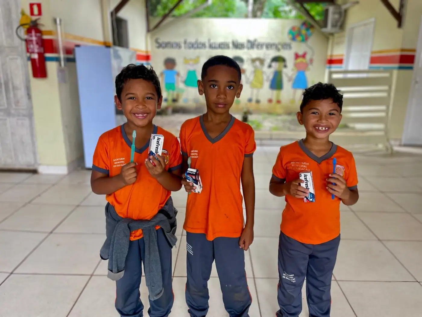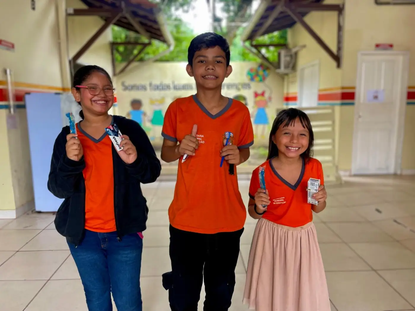 Além do atendimento aos alunos da comunidade e orientação a famíliares dos estudantes, a Prefeitura de Benevides distribuiu kits de escovação para todos os alunos, que receberam os materiais com entusiasmo.