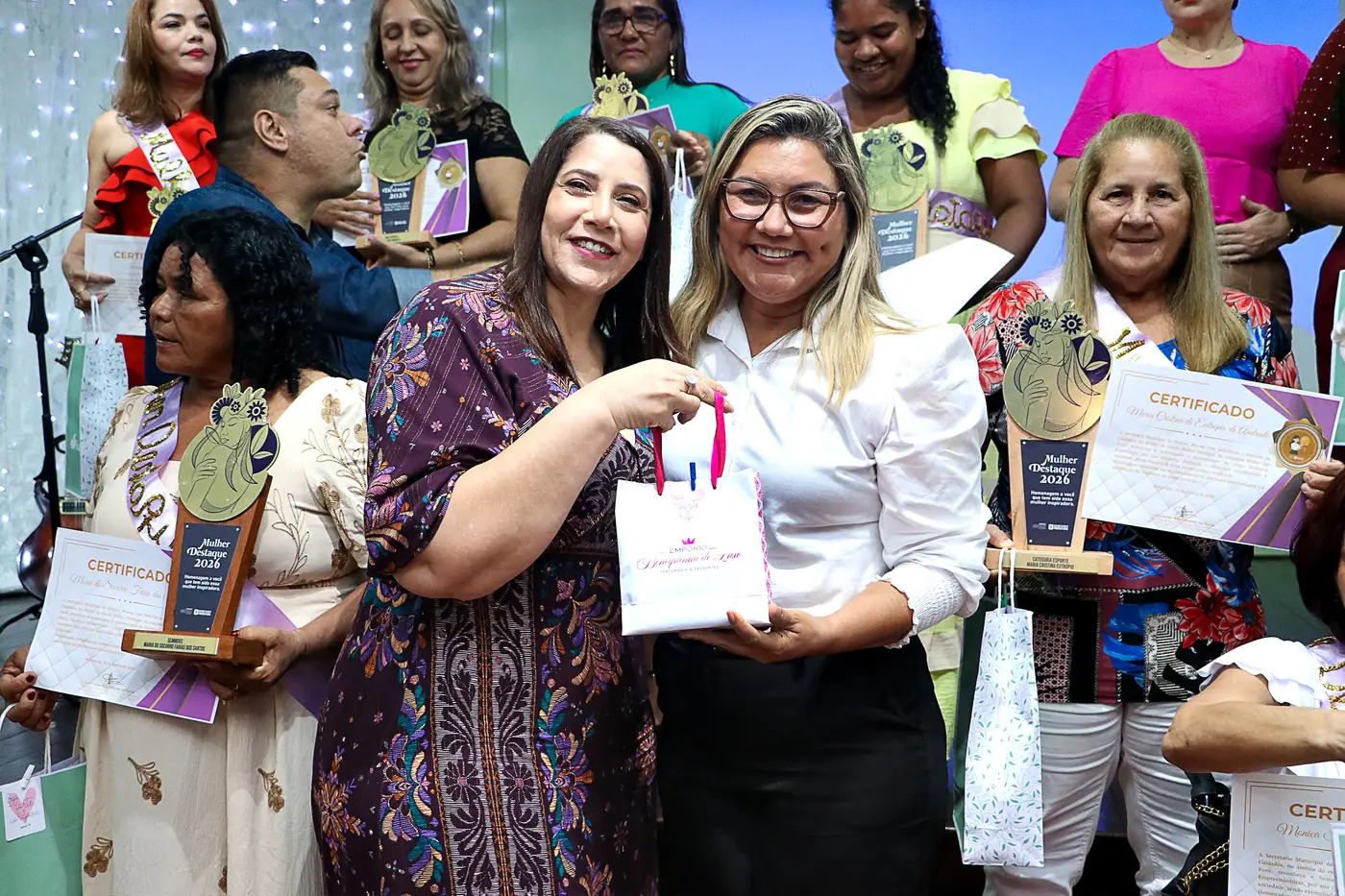 A programação contou ainda com momentos musicais intercalados às homenagens, proporcionando um ambiente de emoção e reconhecimento. Ao final, as homenageadas participaram de um desfile especial, recebendo faixas, troféus e certificados das mãos das autoridades presentes.