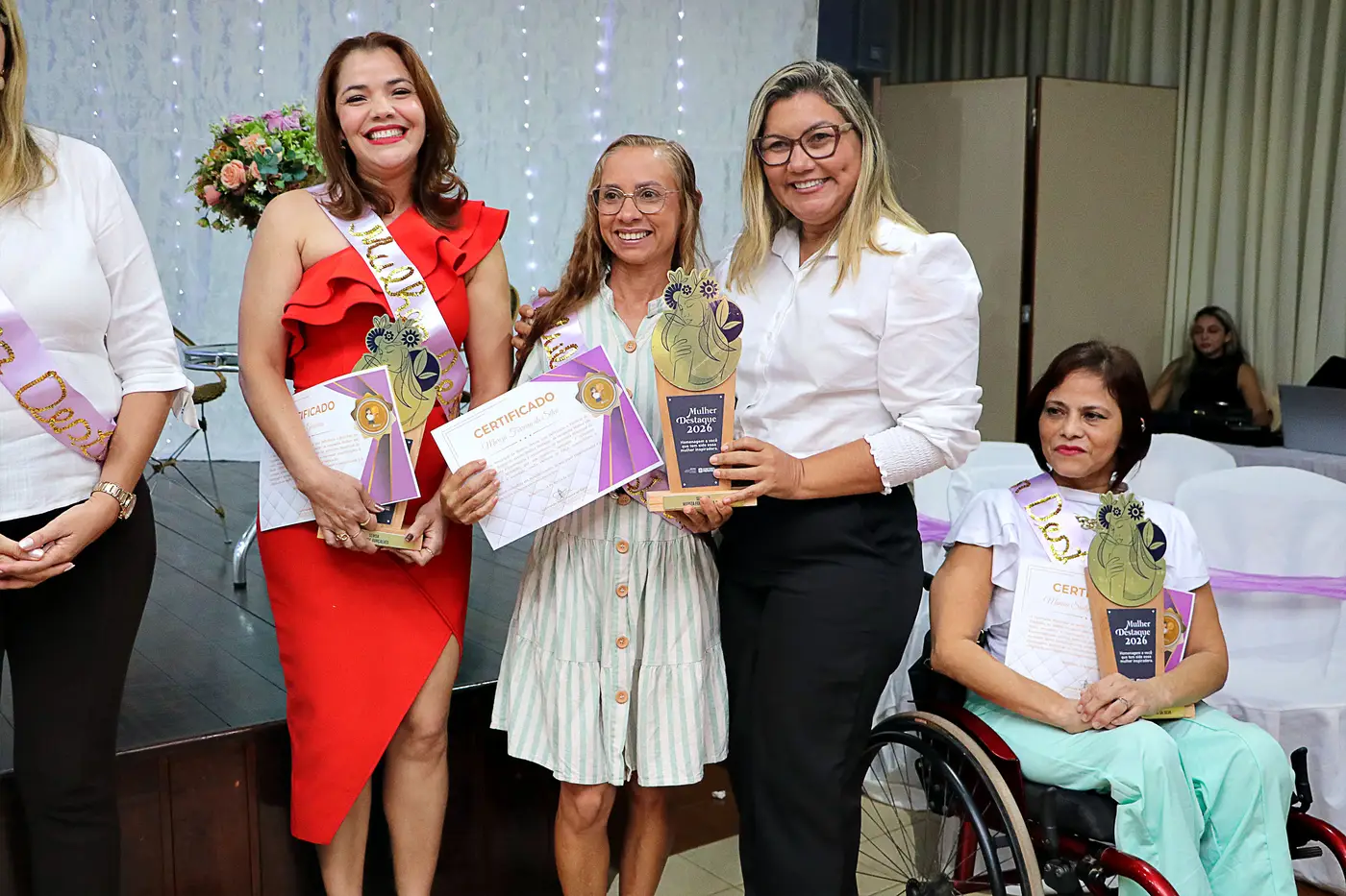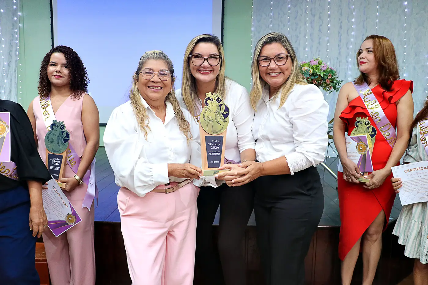 Um dos momentos mais marcantes da noite foi a homenagem “Mulher em Destaque”, que reconheceu mulheres que se destacam em diferentes áreas, como serviço público, empreendedorismo, educação, saúde, meio ambiente e atuação social. Durante a cerimônia, tiveram suas trajetórias celebradas as homenageadas: