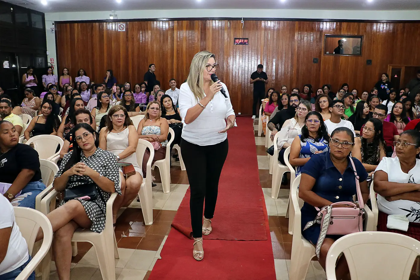 Durante o evento, a prefeita, Luziane Solon, destacou a importância do apoio coletivo no enfrentamento à violência contra a mulher.