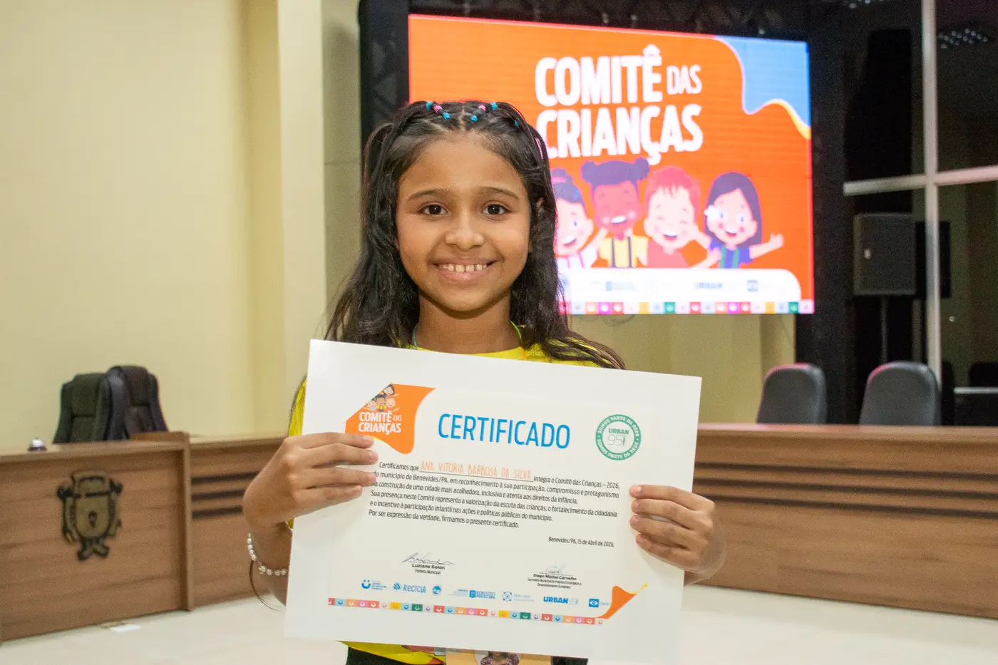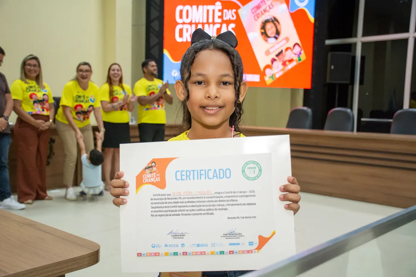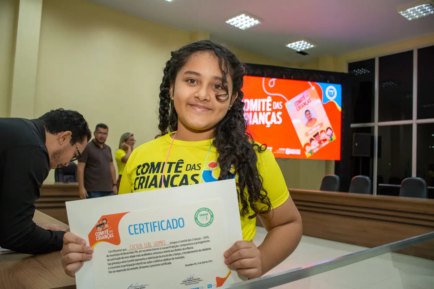 Entre os componentes deste agrupamento infantil, a estudante Jheniffer Letícia de Souza, de 12 anos. “A gente dá ideias para que Benevides vá ficando sempre melhor”, orgulhou-se ela. A atuação ocorre por meio de reuniões, formação de grupos de trabalho temáticos e proposições de projetos e normativas. “É uma atividade muito importante para o desenvolvimento deles como cidadãos. Aprendem sobre o bem social, a expressar opinião e a se comunicar melhor”, declarou Maria Cristina Cardoso, mãe do menino Gerson, certificado pela terceira vez como integrante do Comitê.