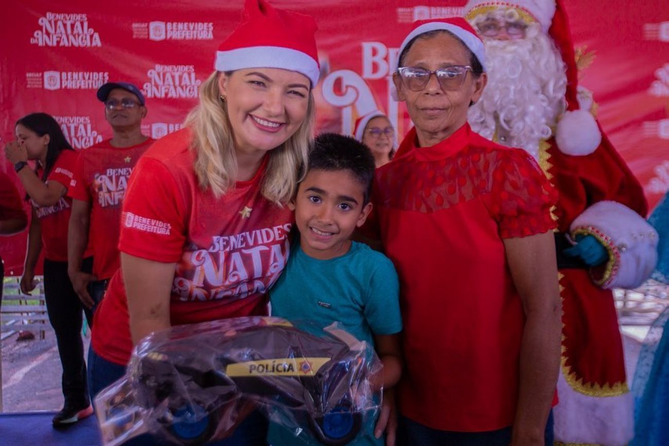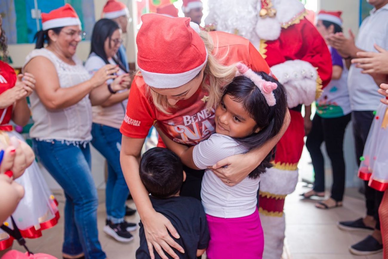 Durante quatro dias, a gestão municipal percorreu no centro de Benevides e nos distritos para fazer a entrega dos presentes de Natal às crianças. Em cada lugar, alunos, famílias e toda equipe escolar esperavam ansiosos e felizes, em clima natalino, pela chegada da Prefeita Municipal, Luziane Solon, Vice-Prefeita, Edivana Lima, e toda equipe.